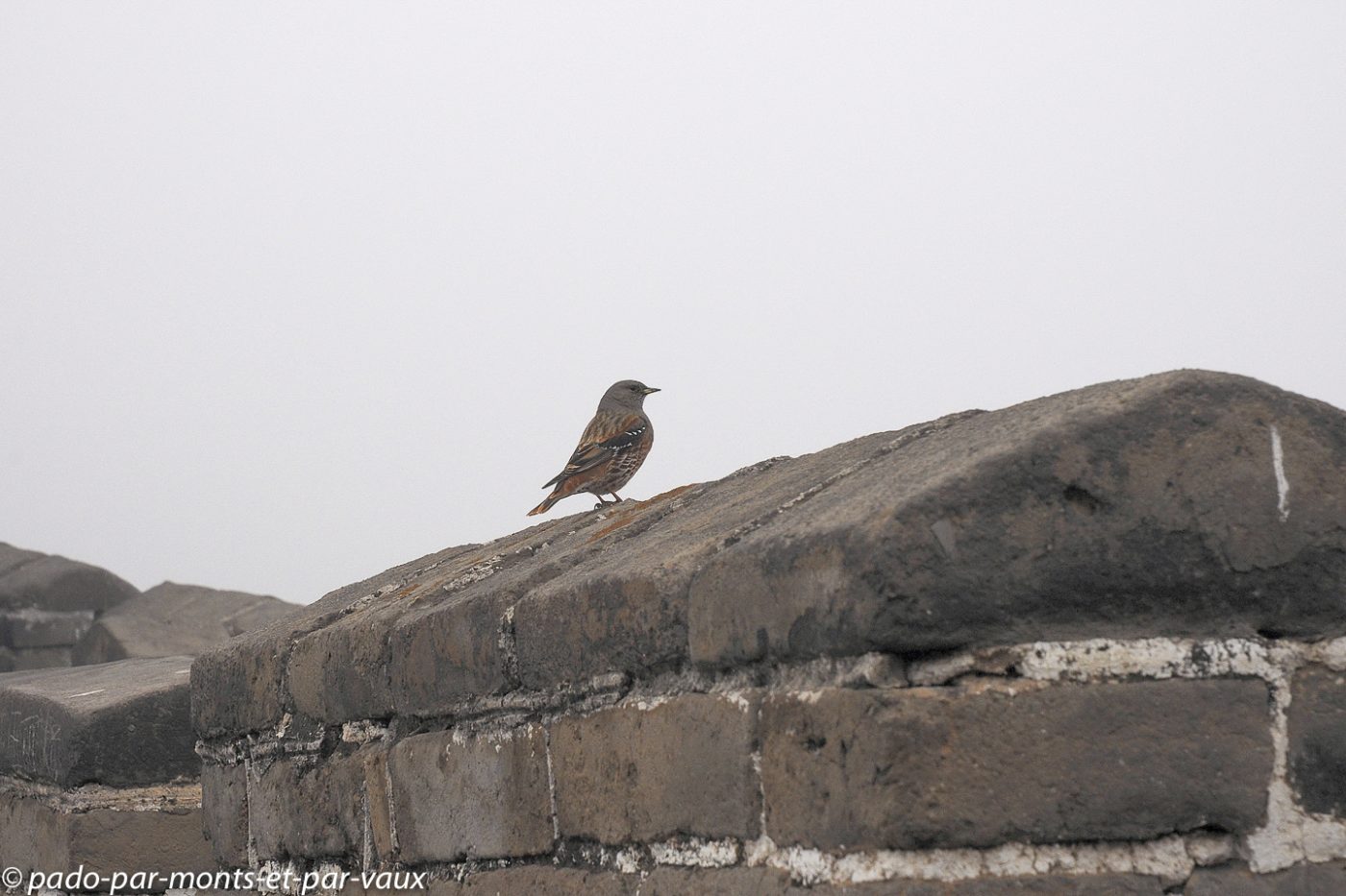 Pour revenir il faut remonter le chemin parcouru. L’effort nous évite d’avoir froid car avec la brume, la température bien basse et un petit vent glacial qui nous cueille au sommet du rempart, il fait plus que frisquet !