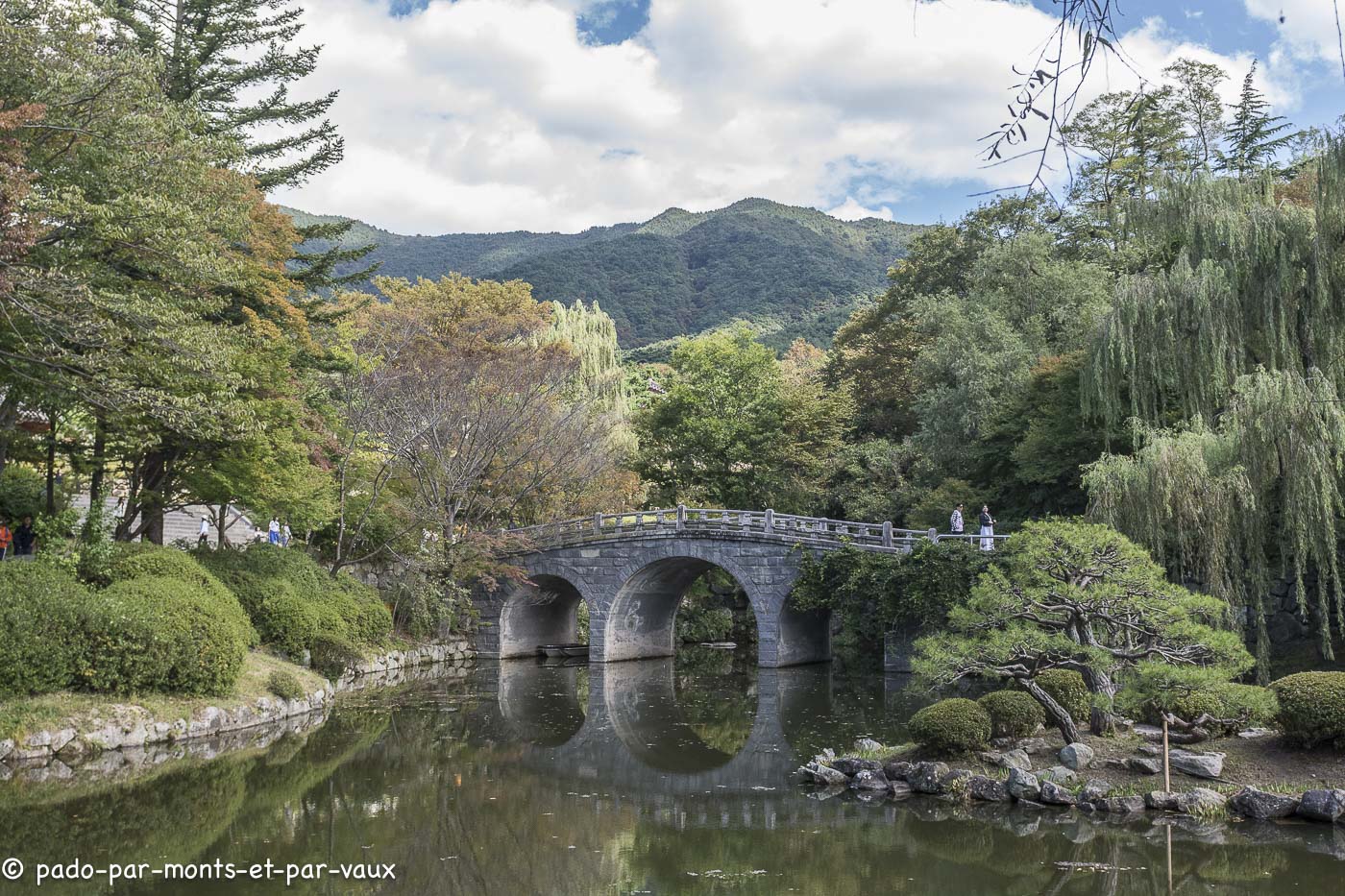 Également très joli parc arboré autour du temple avec plan d’eau et pont en pierre.