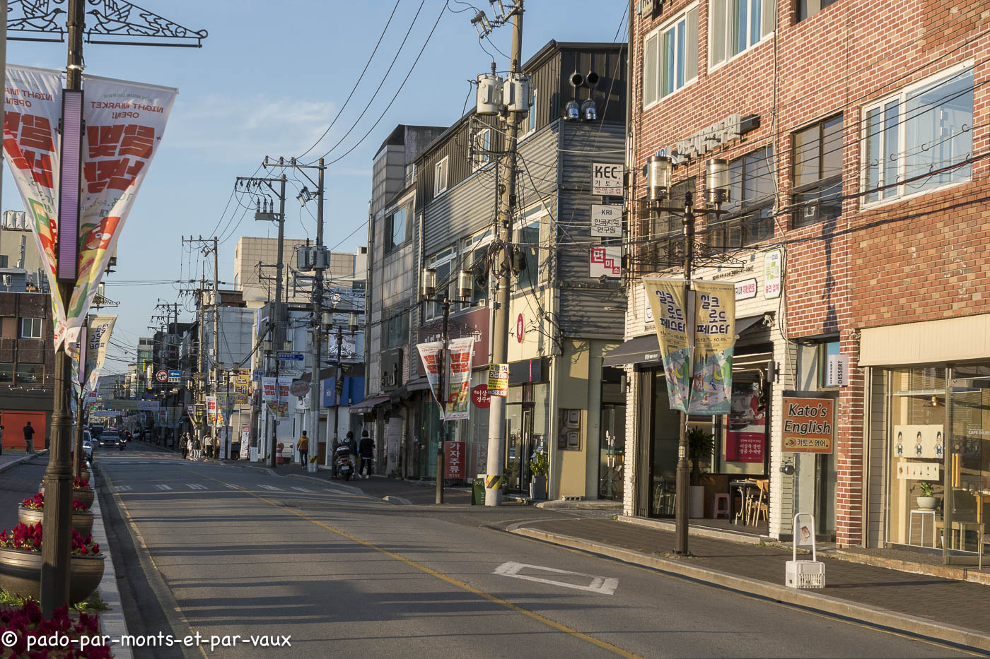 Retour à Gyeongyu en début d’après-midi. Nous décidons de faire une petite pause au Hanok avant de ressortir, histoire de faire un peu de rangement dans les sacs (demain nous rendons la voiture à Busan). Promenade en ville avant de nous mettre à la recherche de la pizzeria Domi kitchen que nous a recommandé le barman de hier soir.