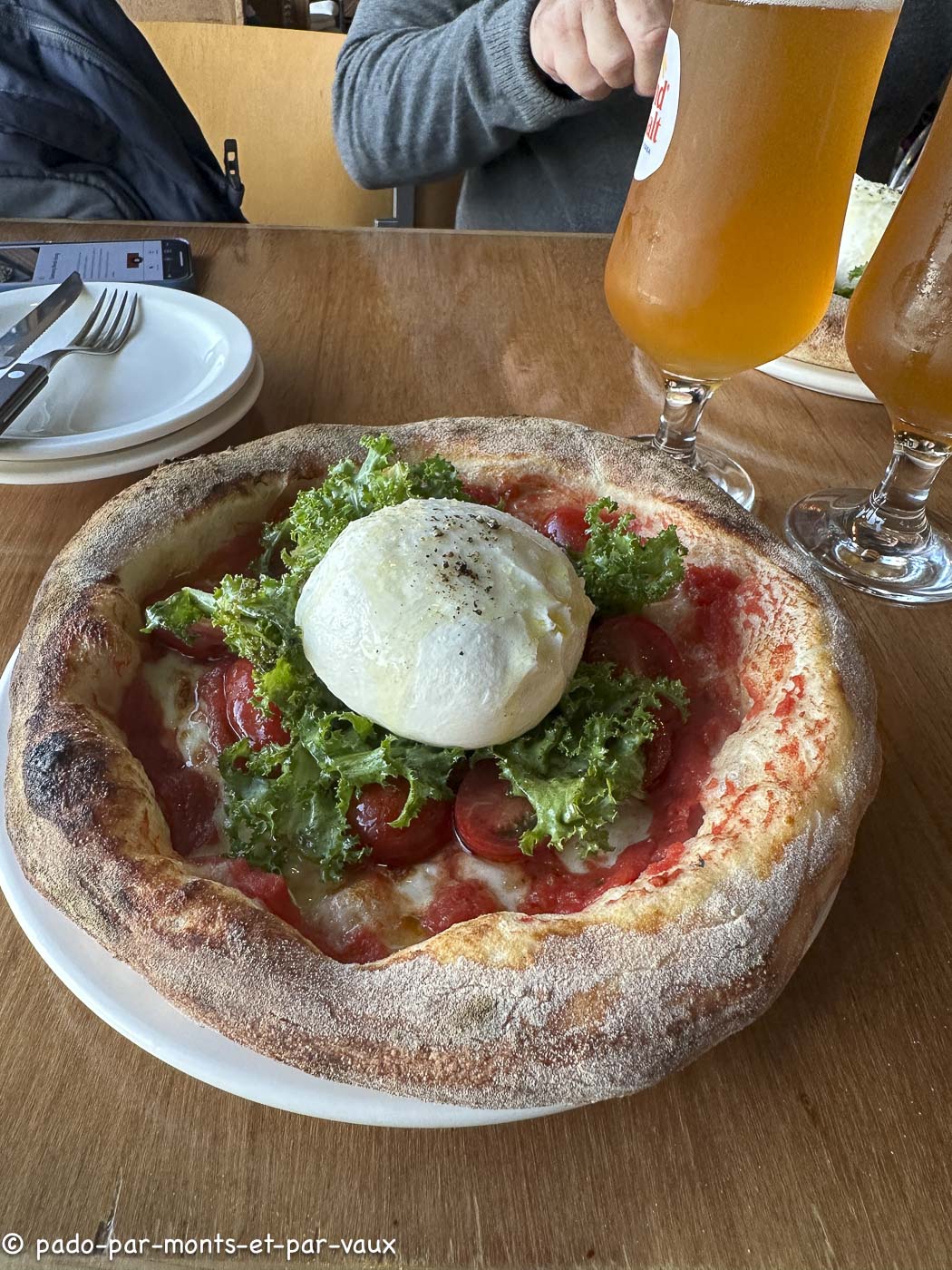 Un peu avant 18h nous sommes attablés (nous n’avons rien dans l’estomac depuis le petit déjeuner). C’est une bonne pizza burrata avec une vraie pate à pizza, de vraies tomates, une burrata pas tout à fait à la hauteur mais bonne quand même et en plus, l’endroit est très sympathique.