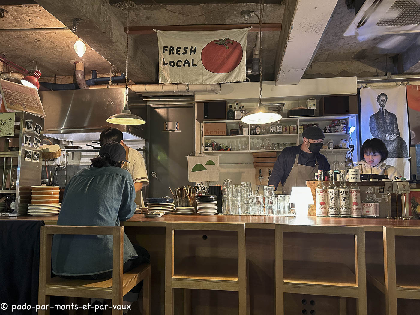 Nous finissons la soirée au Bar boon. Toujours aussi agréable. Je reprends un gin tonic avec un tonic « maison » particulièrement parfumé (romarin, poivre, anis étoilé, orange). Avant de partir ils nous offrent un petit verre de tiramisu (à base de crème de café) très bon (hier nous avons goûté un vin de fruit très parfumé). Nous garderons un super souvenir de ce bar et des jeunes qui le tiennent.