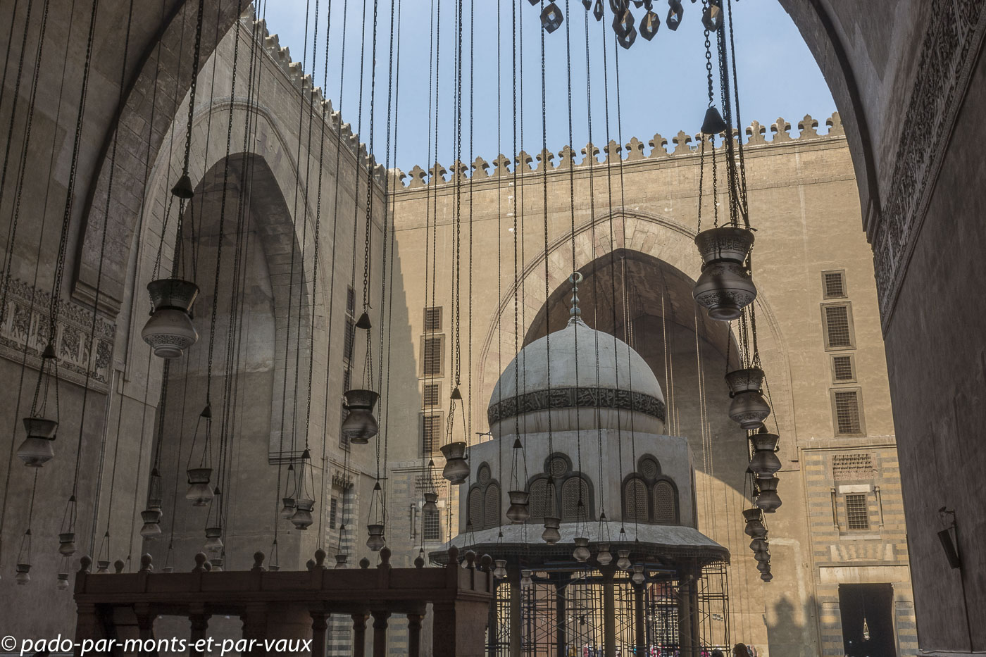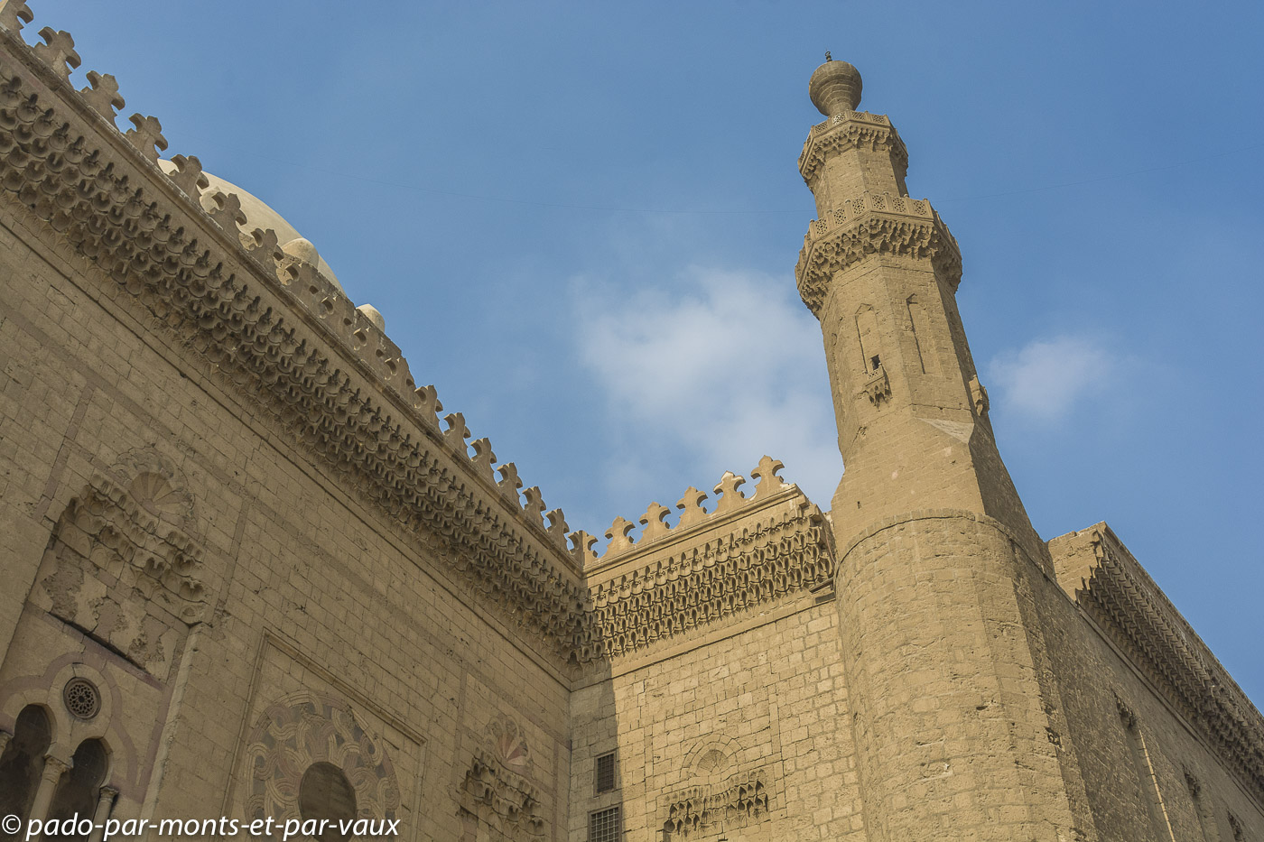 En contrebas de la citadelle nous nous arrêtons à la Madrassa Sultan Hassan. Impressionnante avec son allure de forteresse. Construite au milieu du 14ème siècle, elle est considérée comme le chef-d’œuvre de la période mamelouke