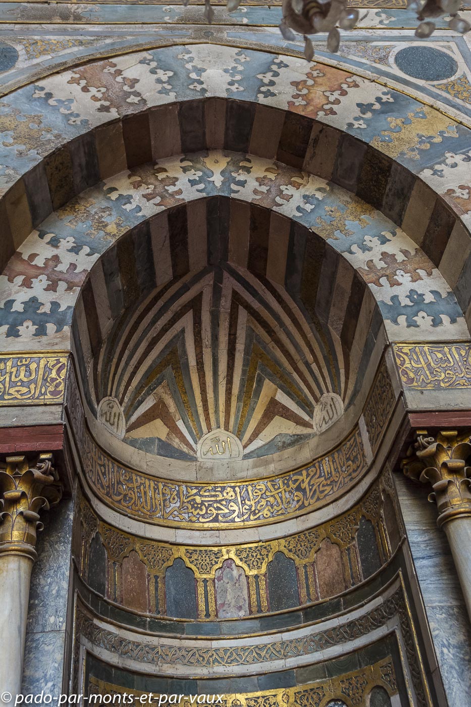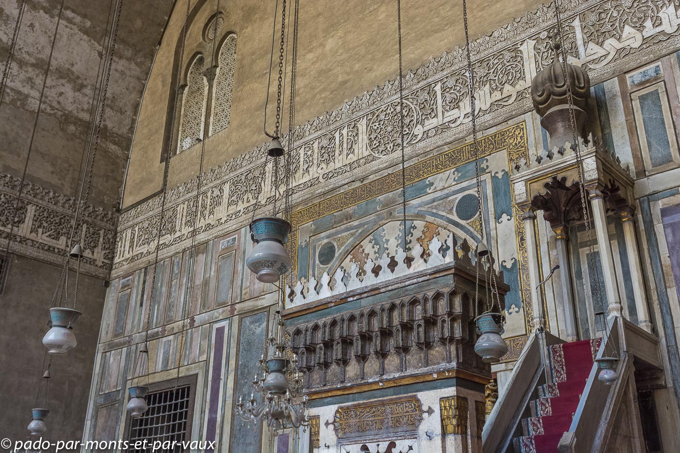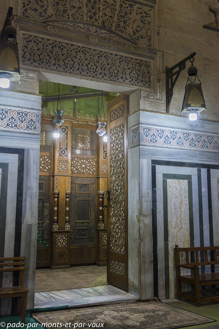 Avant de partir nous faisons un arrêt à la mosquée Al-Rifai juste en face. Elle est beaucoup plus récente (1869 – 1912) et abrite des tombeaux de la famille royale égyptienne, ainsi que celui du dernier shah d’Iran.