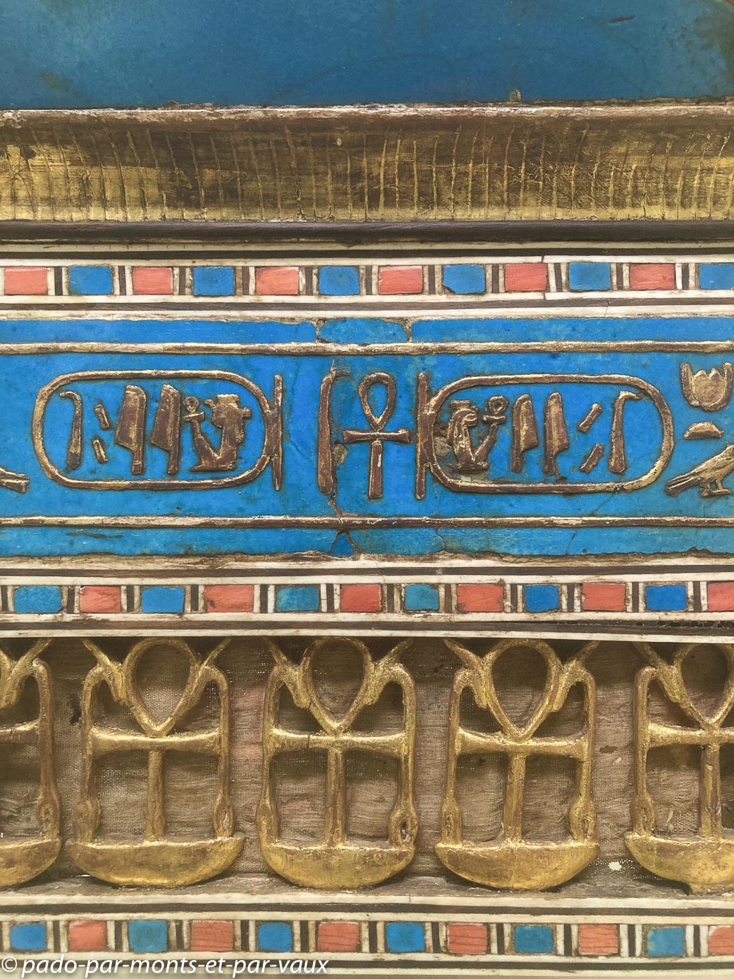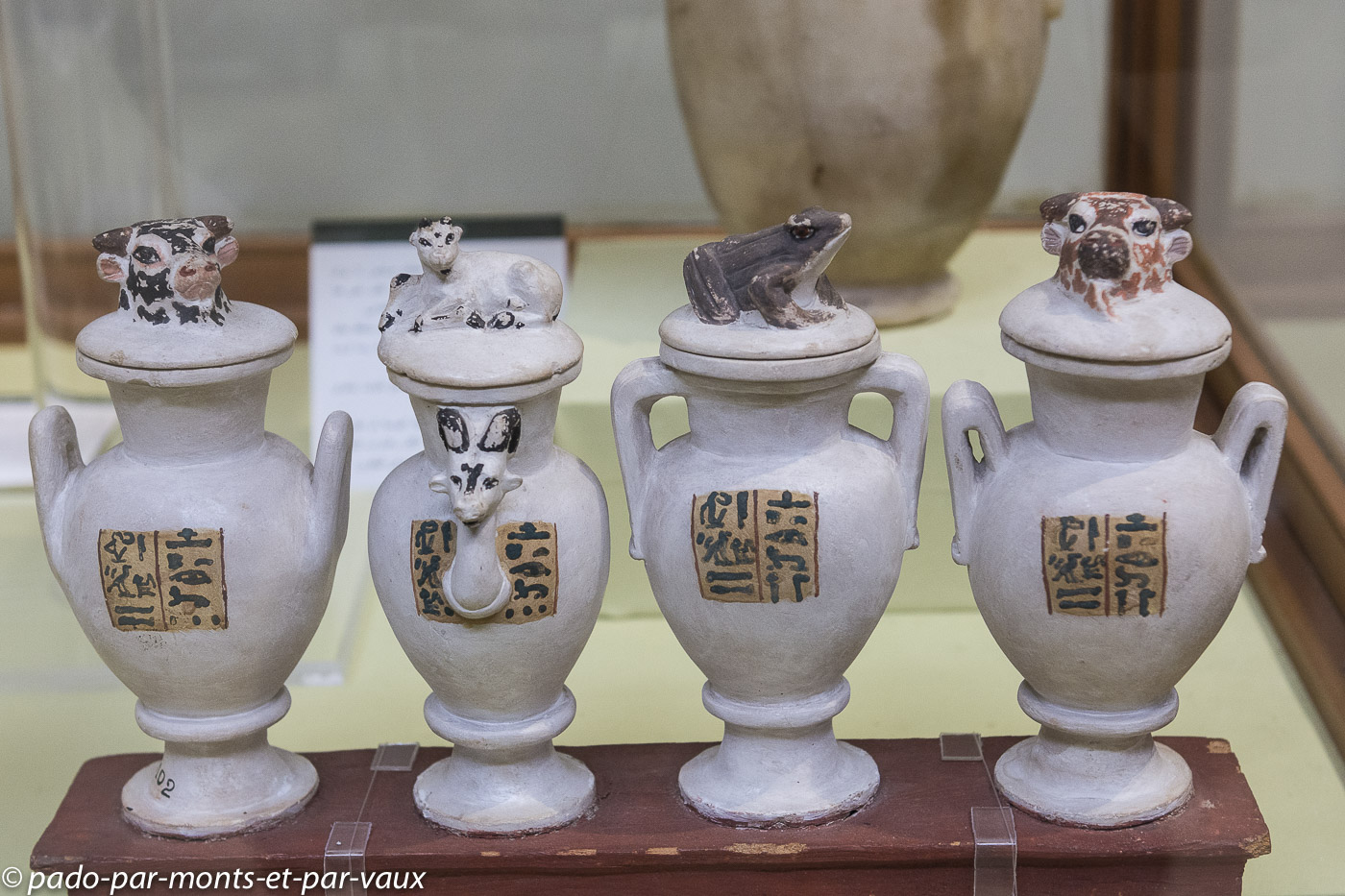 Parmi les nombreuses pièces qui nous ont beaucoup plu on peut citer une statue de scribe, une statue du prêtre Kaaper en bois, le prince Rahotep et son épouse, le nain Seneb et sa famille, le sphinx d’Amenemhat, les salles consacrées à Toutankhamon, les sarcophages et mobilier funéraire de Youya et Touya (parents de l’épouse d’Aménophis III), les bijoux et objets retrouvés dans diverses tombes.