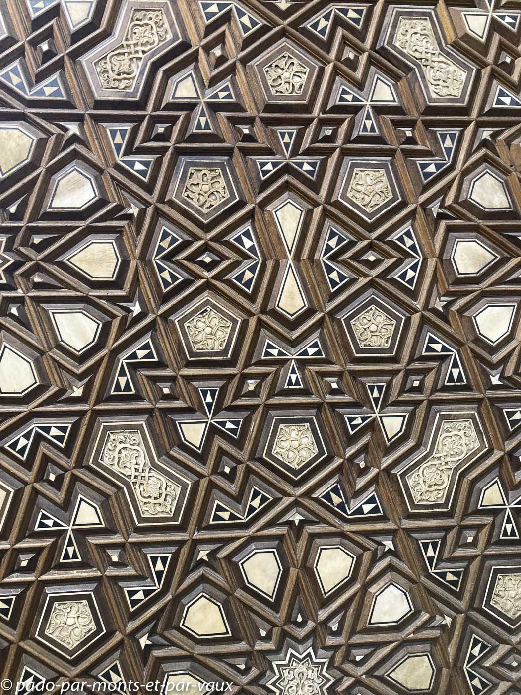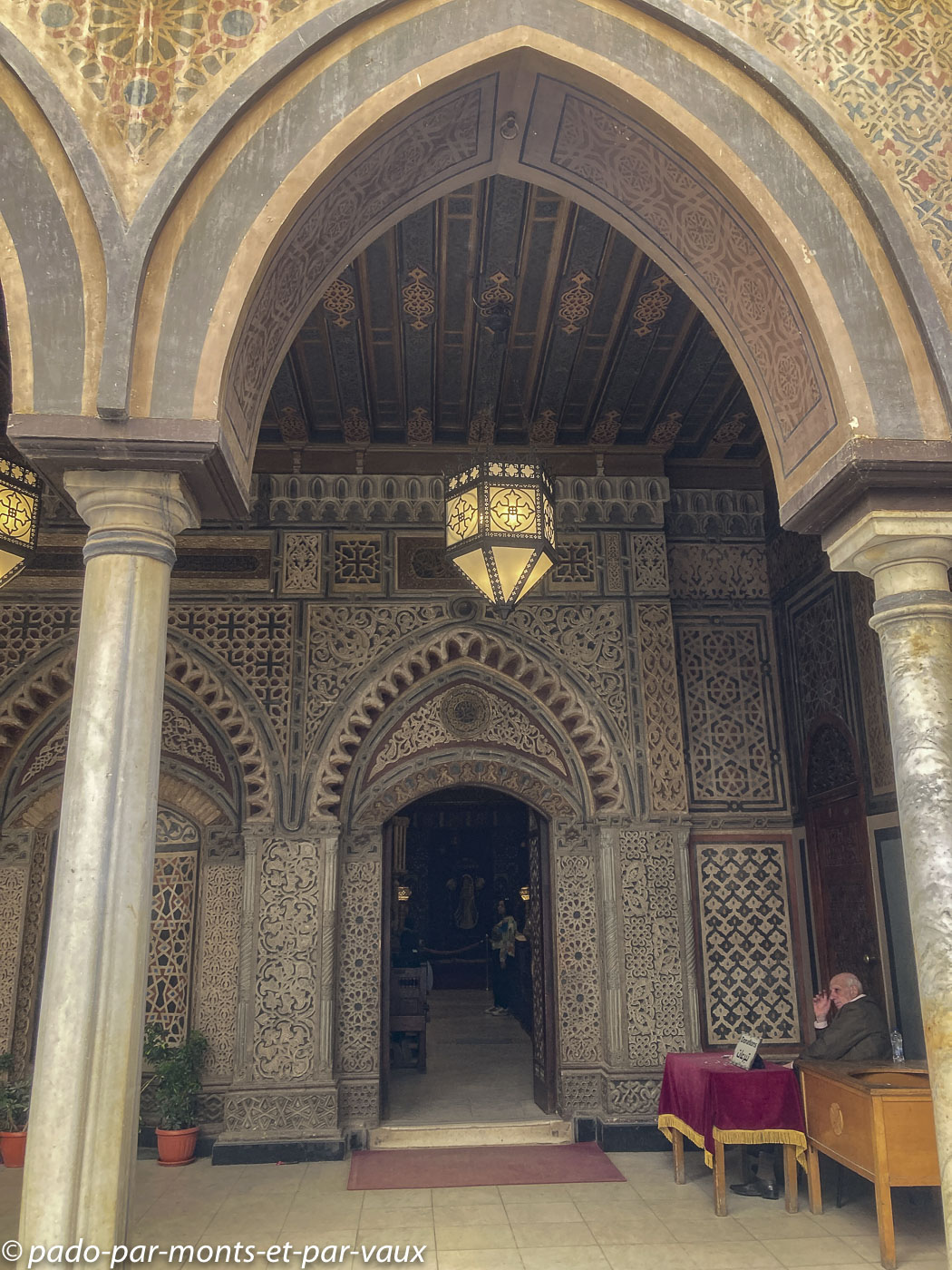 Nous passons devant les restes bicolores de la forteresse de Babylone construite par l’empereur romain Dioclétien vers 300 après JC pour sécuriser le commerce sur le Nil. Nous poursuivons par l’église suspendue dédiée à la vierge Marie ou El-Moallaqa. Édifiée au cours du 4ème siècle au-dessus d’une tour de l’ancienne forteresse romaine (d’où le terme « suspendue »). Très jolie avec une magnifique chaire, de nombreuses icônes, des boiseries travaillées et un élégant vestibule.