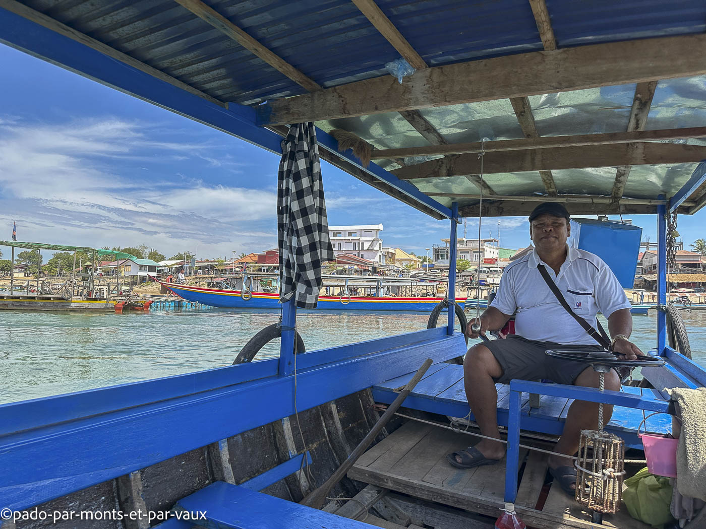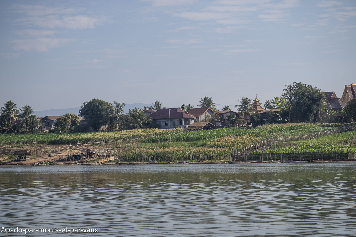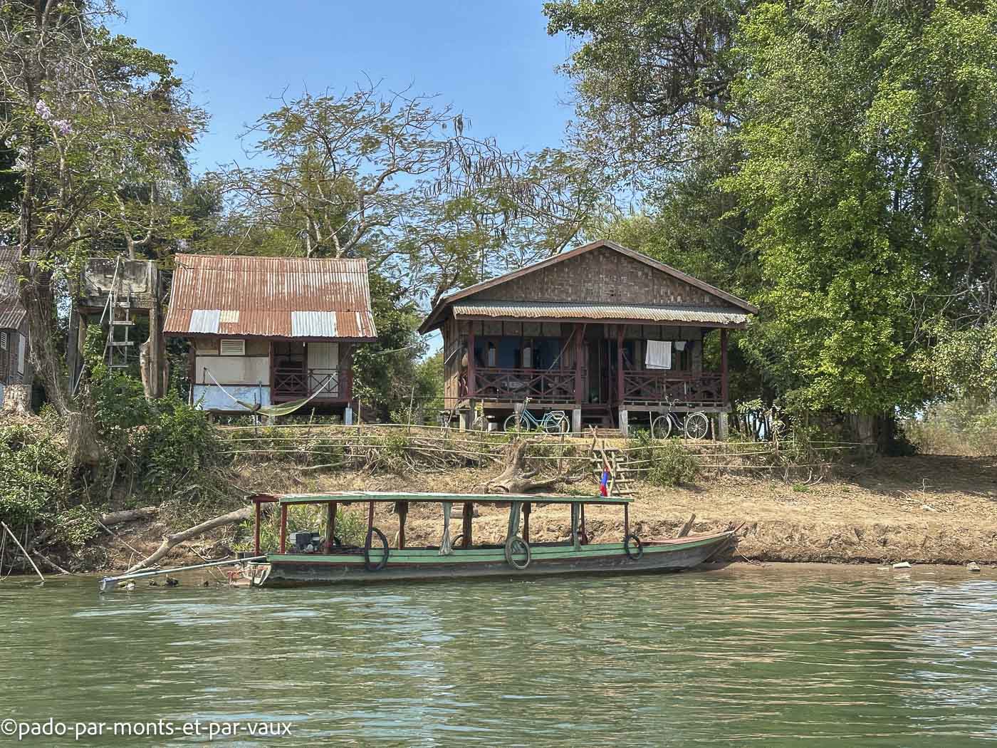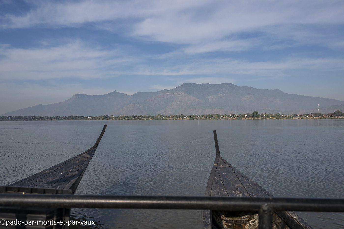 Nous quittons un peu à regret la Folie Lodge, mais nous devons prendre le bateau à 8h pour rejoindre le chauffeur. Cette fois le bateau de l’hôtel nous accompagne de l’autre côté du Mékong, sur la rive opposée à Champassak.