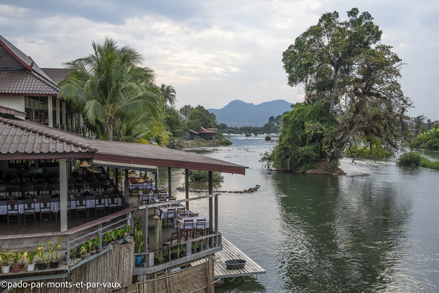 Premier arrêt aux chutes de Li Phi au nord-ouest de l’île. L’accès est payant deux fois : une première fois pour entrer dans le site (30.000 kips) et une deuxième fois pour accéder à cinq ponts suspendus qui permettent de bien voir les cascades. L’exploitation de cette zone a été cédée à un privé et du coup on paye le prix touriste, équivalent quand même à une quinzaine d’euros ! L’ensemble mérite la visite car les ponts permettent vraiment de surplomber les chutes sur plusieurs centaines de mètres.