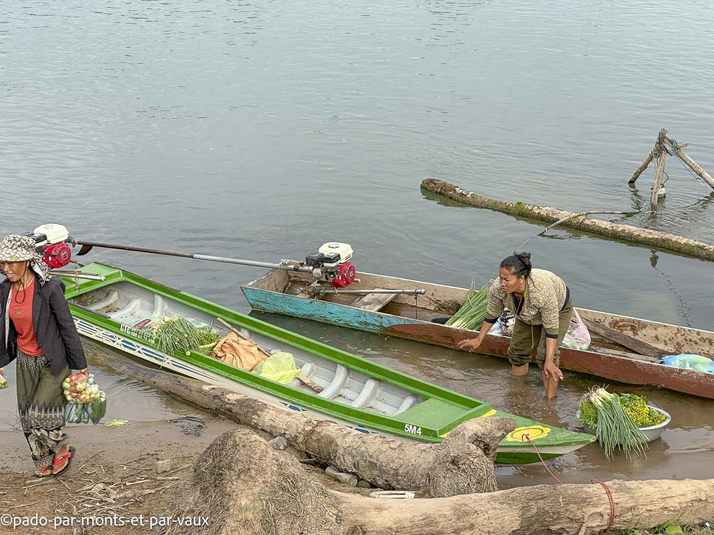 A 8h30 le chauffeur vient nous récupérer et nous reprenons le bateau en direction de Nakasang. Il y a beaucoup d’activité sur l’eau et dans le petit port où les pêcheurs débarquent leurs poissons qui sont vendus sur place ou conditionnés directement dans des caisses avec des glaçons pour partir vers une autre destination.