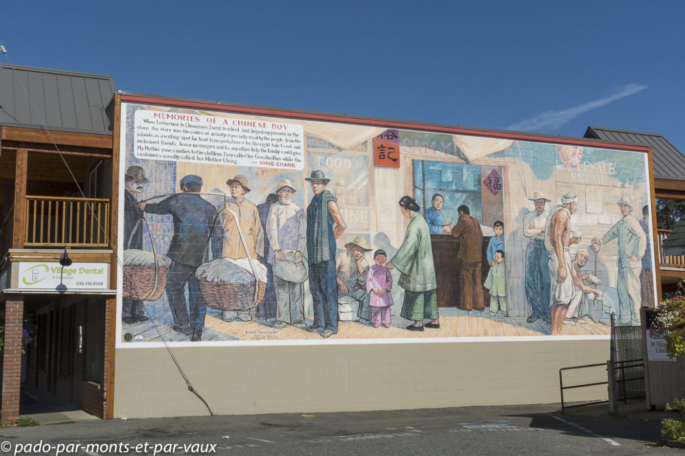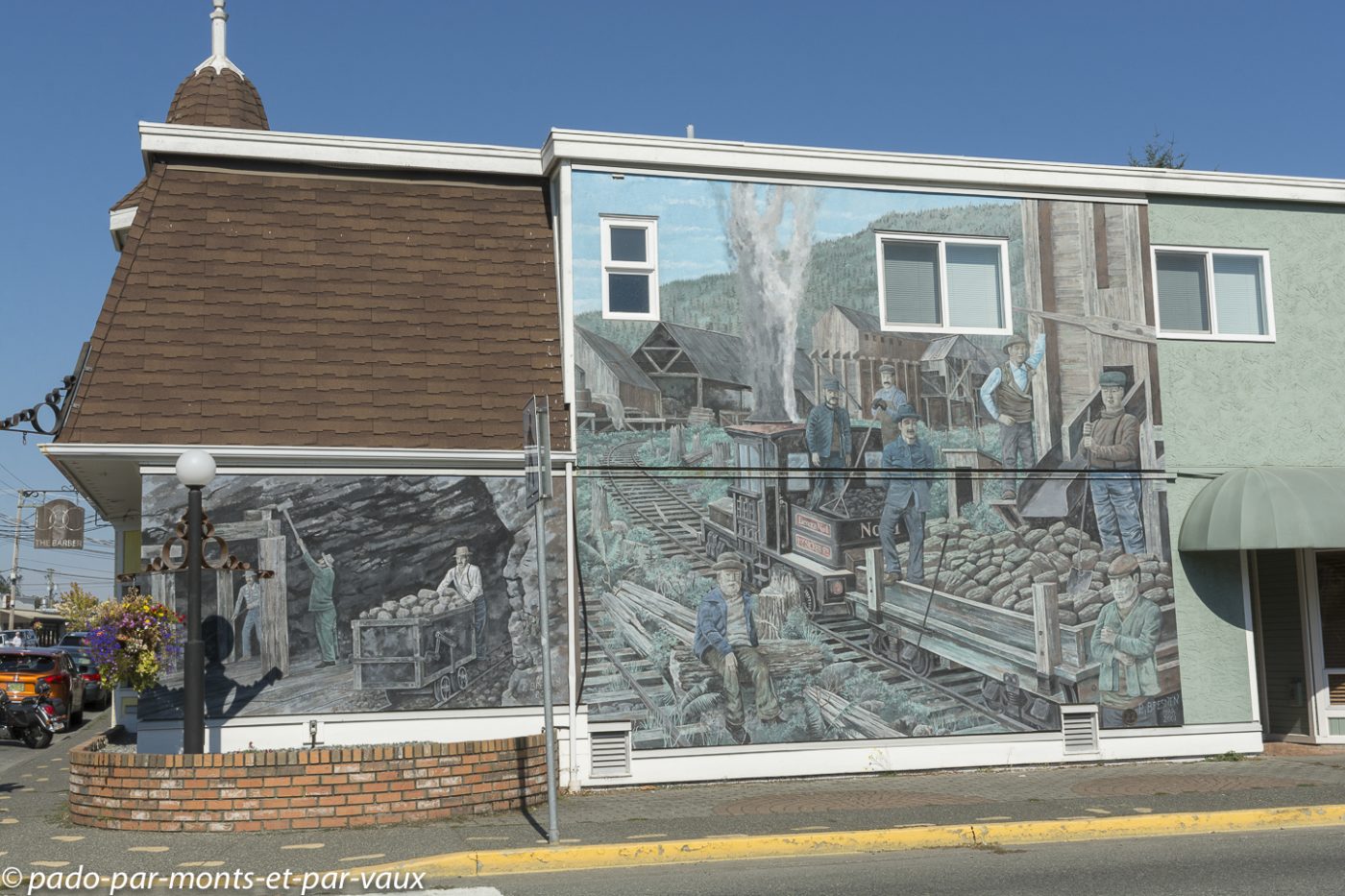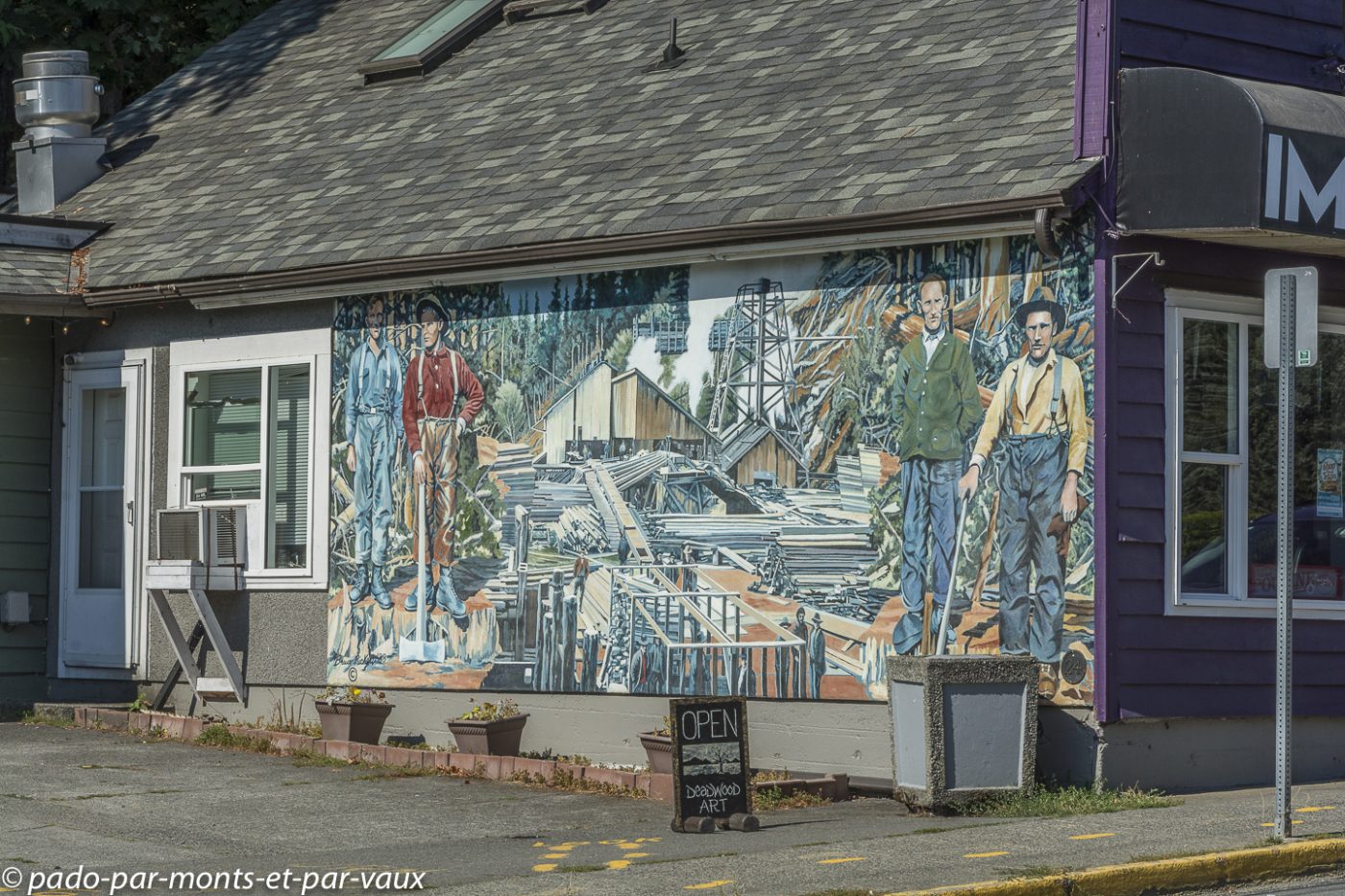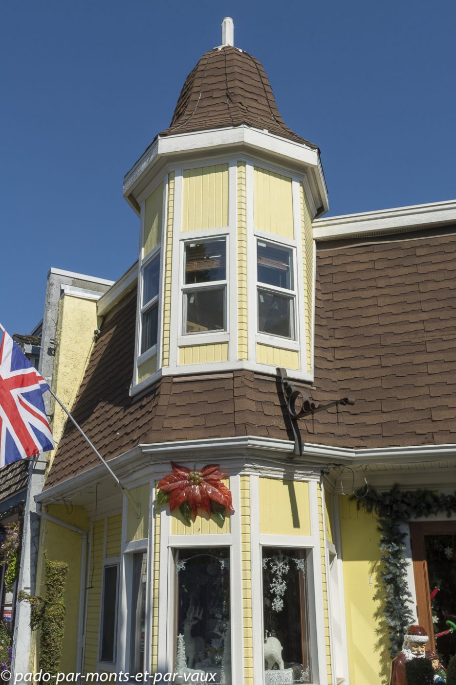 Nous faisons étape à Chemainus, une petite ville qui vivait traditionnellement du commerce du bois et qui, depuis les années 80, a essayé de développer le tourisme en initiant la décoration de ses murs avec des peintures retraçant l’histoire de la ville et de ses habitants. Le résultat est plutôt sympathique même si certaines fresques murales sont un peu kitsch. L’une des peintures les plus réussies représente les portraits de trois indiens entourés de totems. Il y a également toute une série de fresques inspirées des œuvres d’Emily Carr, célèbre peintre originaire de Colombie Britannique. Nous profitons de l’arrêt pour nous acheter une bricole dans une boulangerie et pour faire du lèche-vitrine dans un magasin entièrement dédié aux décorations de Noël. Je finis par craquer pour un ours avec un bonnet rouge qui trouvera sans mal sa place dans notre prochain sapin.