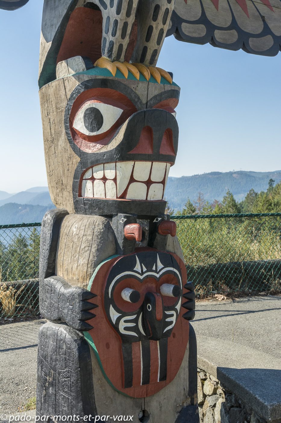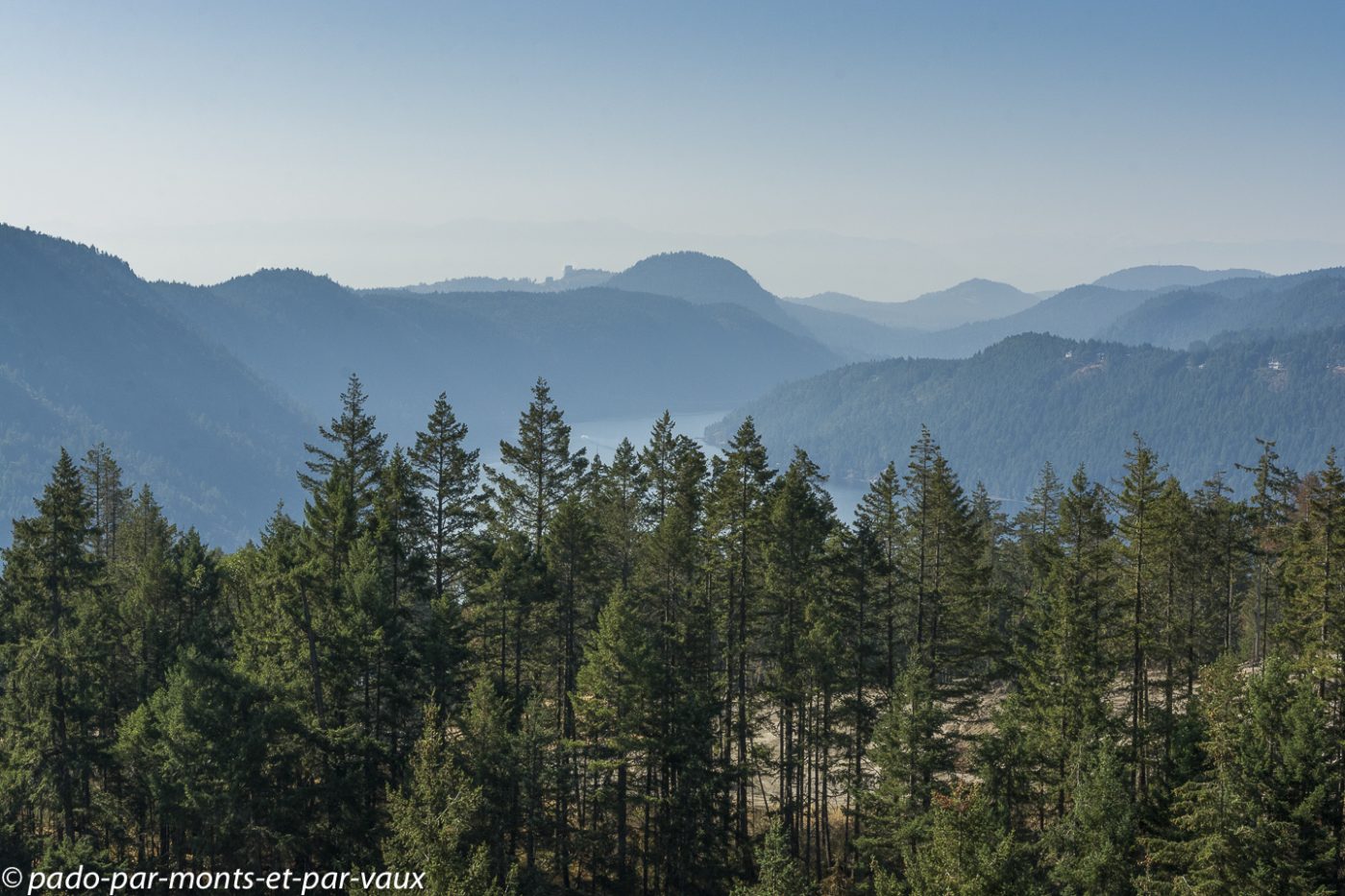 Départ de Victoria après avoir fait nos adieux à notre charmante hôtesse. Ce B&B était vraiment parfait et idéalement placé pour profiter de Victoria. Aujourd’hui nous avons près de 350 kms à faire pour gagner Tofino, notre étape du soir. La route en direction de Nanaimo passe en forêt et possède des arrêts aménagés qui offrent quelques points de vue. Notre progression est lente car la vitesse est limitée à 80 kms/h et à 50 kms/h dès qu’il y a des maisons. Toutes les intersections sont par ailleurs équipées de feux de circulation si bien que les arrêts sont fréquents. Du coup, nous avons tout le loisir de profiter du paysage.