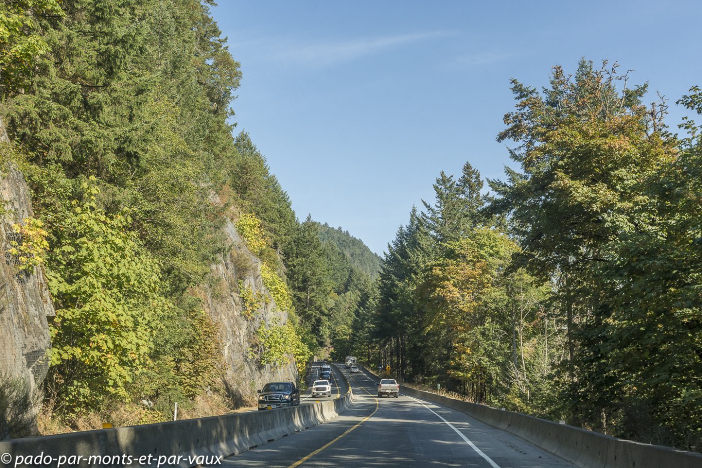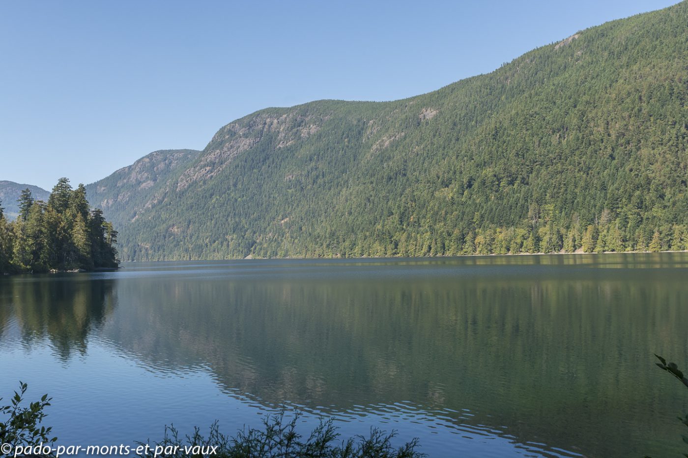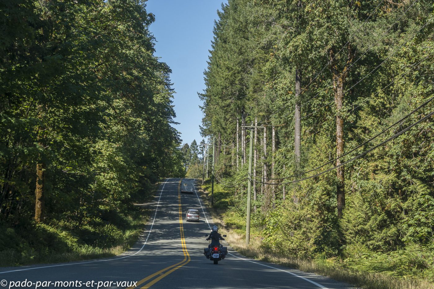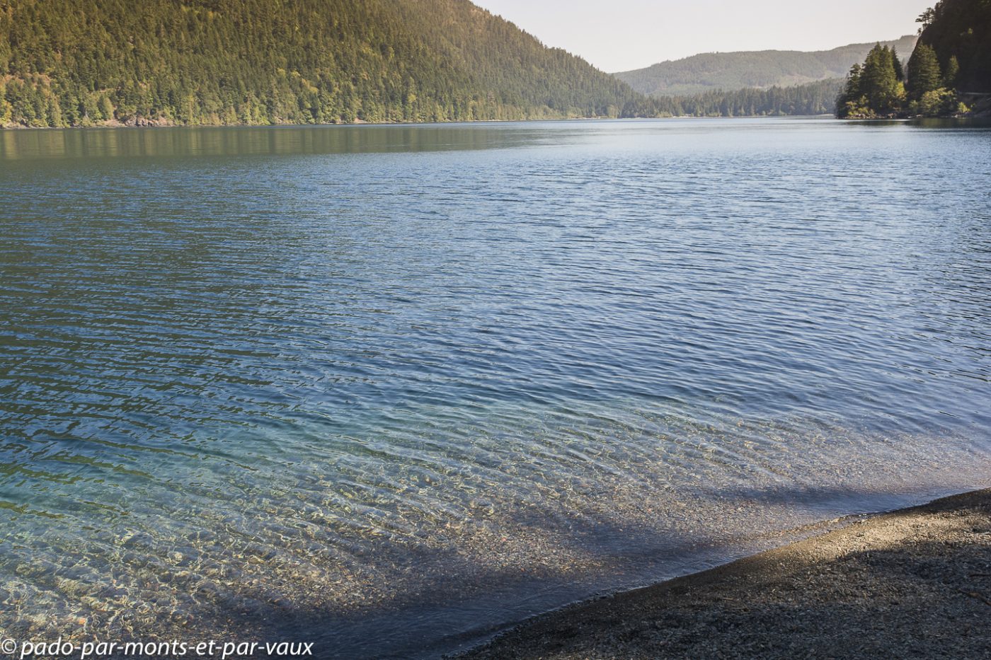 Quelques kilomètres après Nanaimo, au niveau de Nanoose bay, nous prenons une route vers Port Alberni, l’intérieur de l’île et plus loin le Pacifique. La circulation, qui jusqu’à présent était assez dense, se raréfie, la route devient particulièrement jolie après Port Alberni, nous traversons des forêts, longeons des lacs et des rivières. La chaussée est en mauvais état et tout un tronçon de route est en travaux (nous arrivons à passer car dans l’après-midi il y a un système de circulation alternée, mais le soir la route est complètement fermée à la circulation).