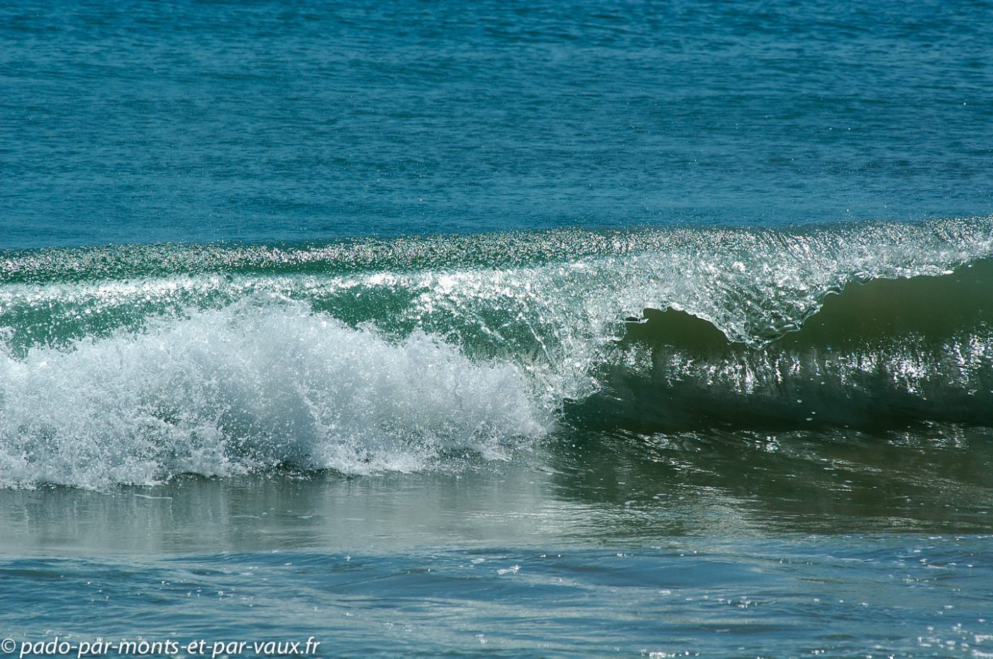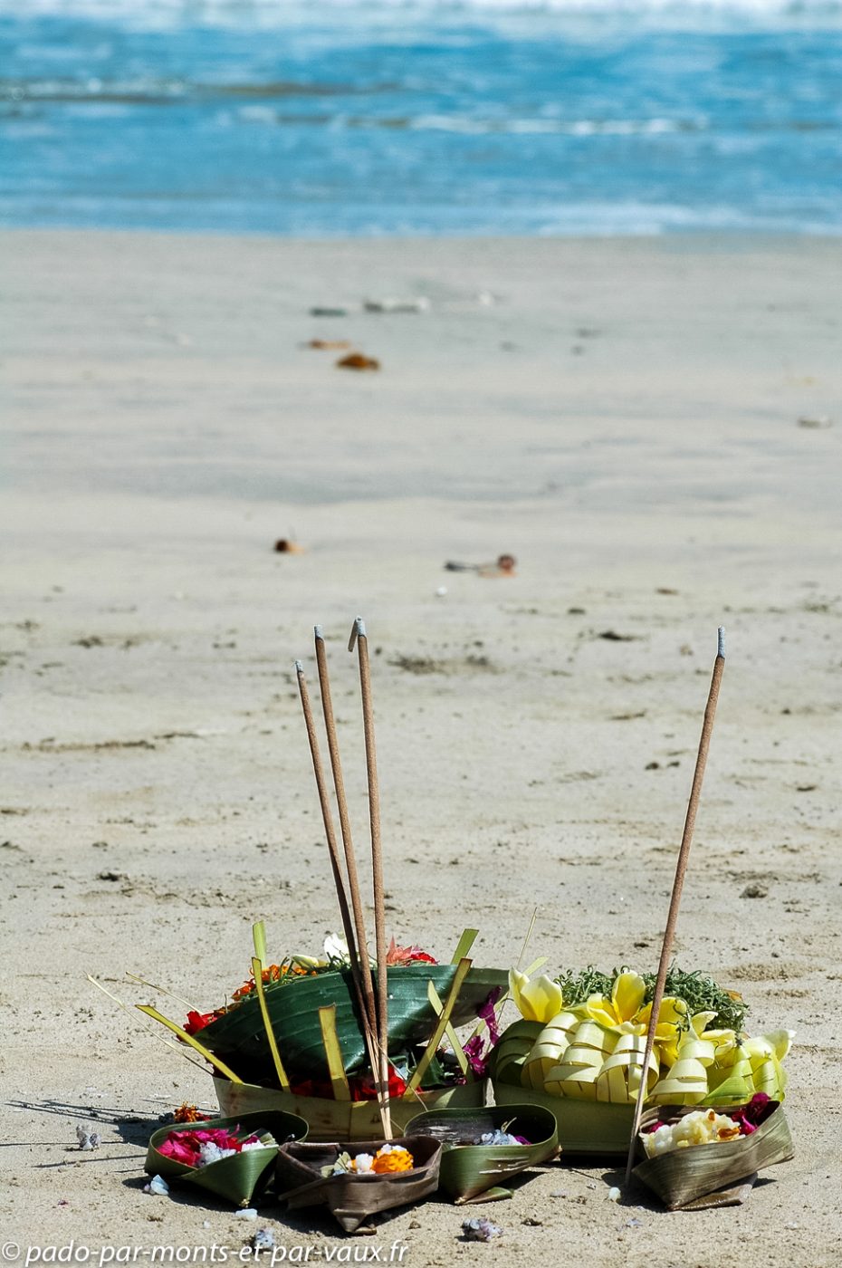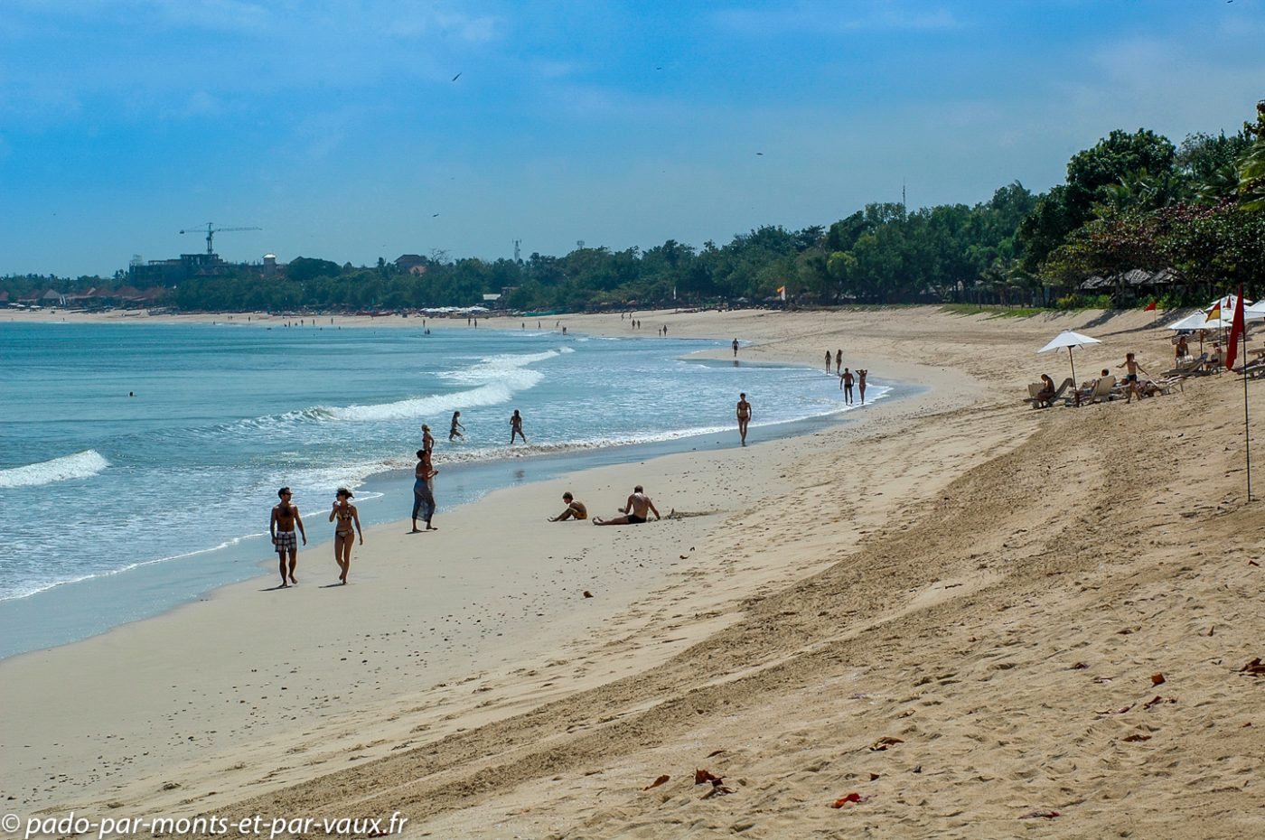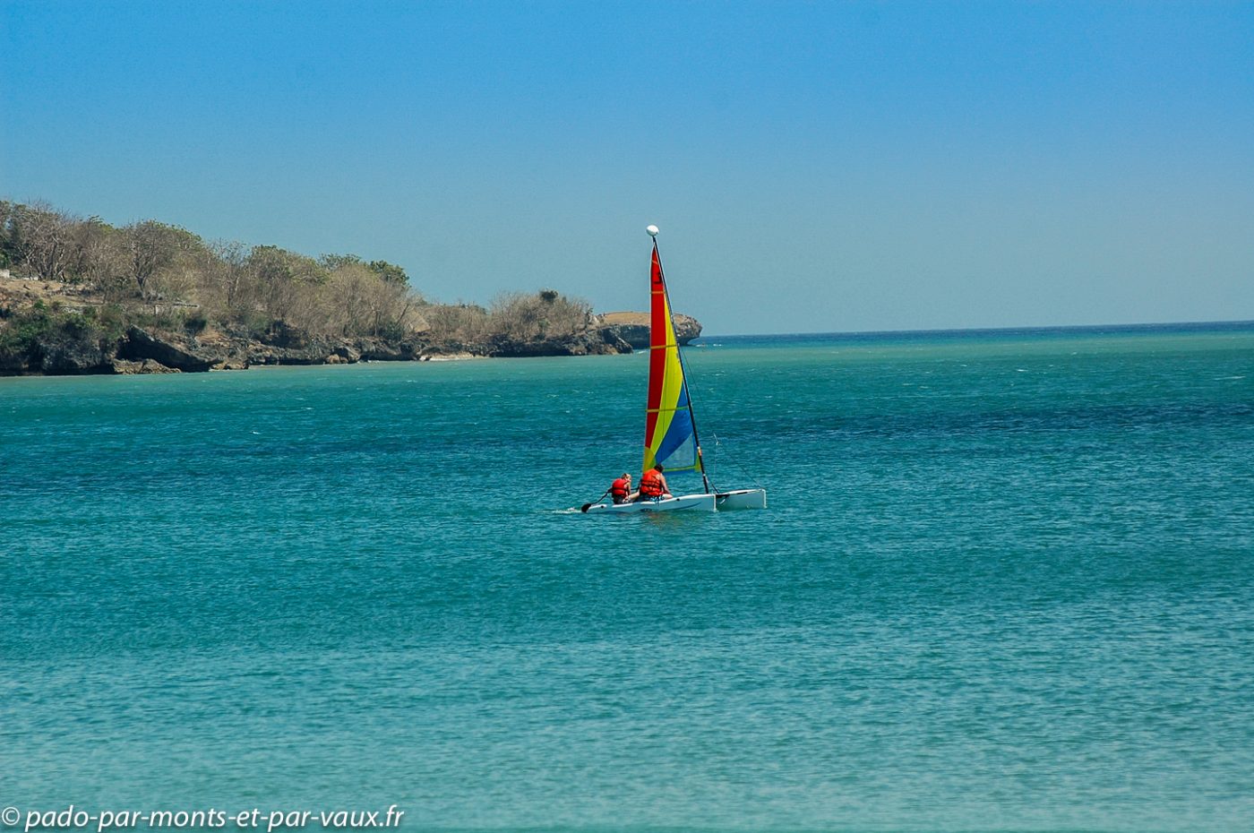 Baignade jusque vers 14 heures. Personne ne veut sortir de l’eau ! Je bouquine, la tête à l’ombre avec la double protection d’un chapeau de paille et d’un arbuste et les pieds au soleil, avec en fond le bruit des vagues qui s’écrasent sur la grève.Poissons grillés sur la plage dans l’un des nombreux petits restaurants installés en bord de mer (une cahute sommaire, quelques parasols et tables de plage et du poisson frais). Nous nous régalons avec des gambas, des palourdes, des calamars et un poisson succulent pour un prix dérisoire.