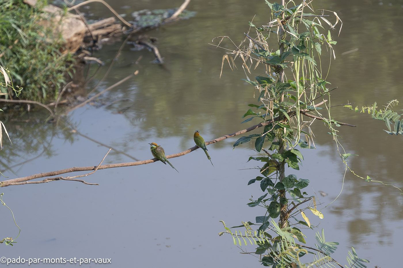 Guêpier d’Orient (Merops orientalis) – Asian Green Bee-eater. Oiseau vert avec une tête marron et un cou bleu.