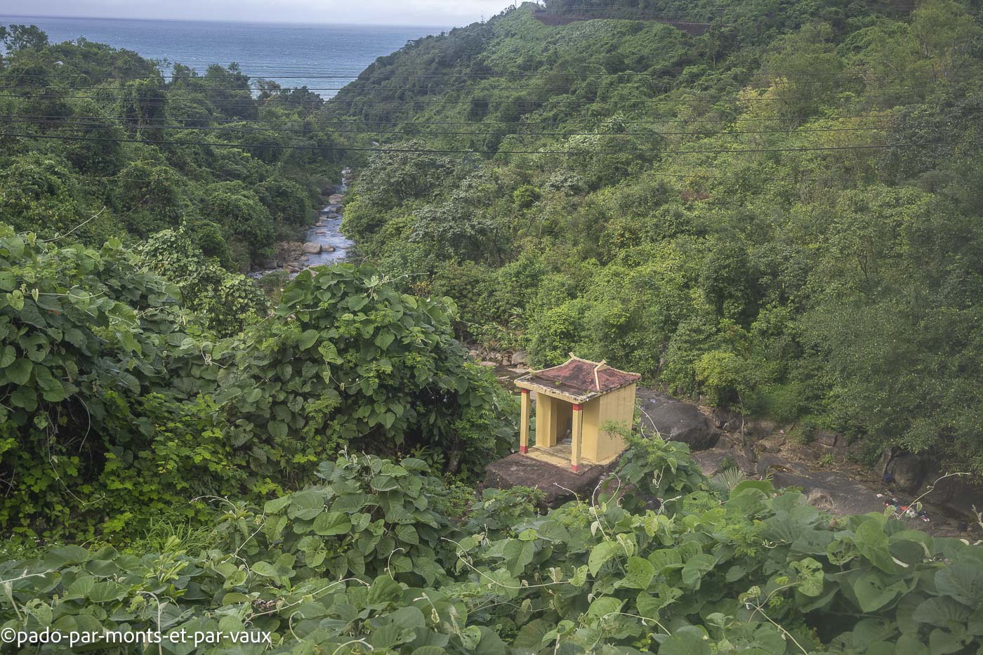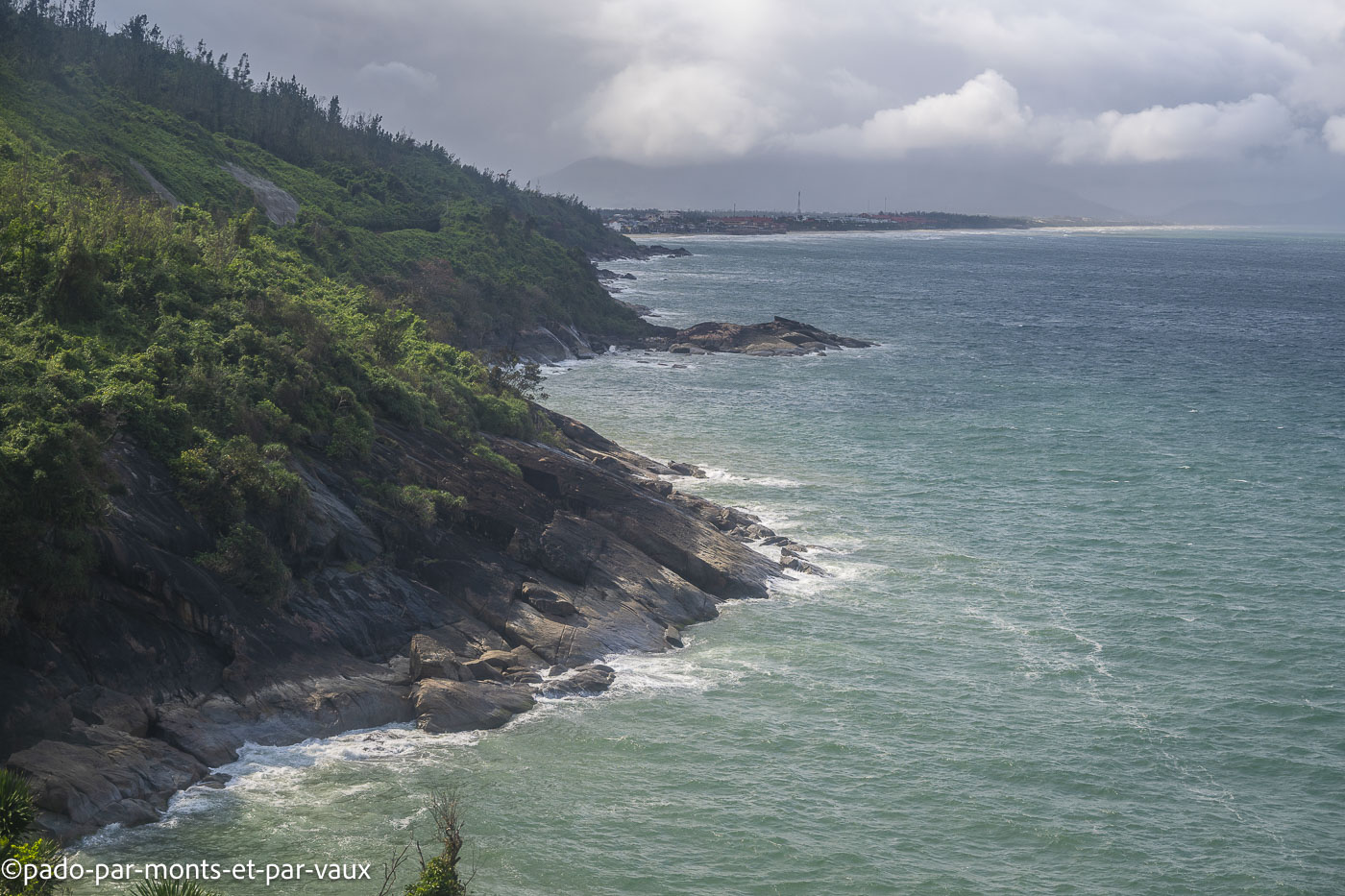 De l’extérieur le train n’est pas de première jeunesse, mais il est à l’heure (13h40). La durée estimée du trajet jusqu’à Hanoi est de 16 heures. A l’intérieur le wagon est correct. Nous sommes dans un compartiment à quatre couchettes et nous allons avoir la bonne surprise de ne pas avoir d’autre voyageur avec nous. Le train grince, se traîne comme un escargot et nous ballotte de gauche à droite. Cela nous rappelle les vieux trains de notre enfance, bien avant l’heure des TER et des TGV ! La première partie du trajet, entre Dalat et Hué est magnifique. Pendant deux heures et demie, la voie ferrée surplombe la mer et offre des vues dégagées sur la côte tout en traversant une végétation très luxuriante.