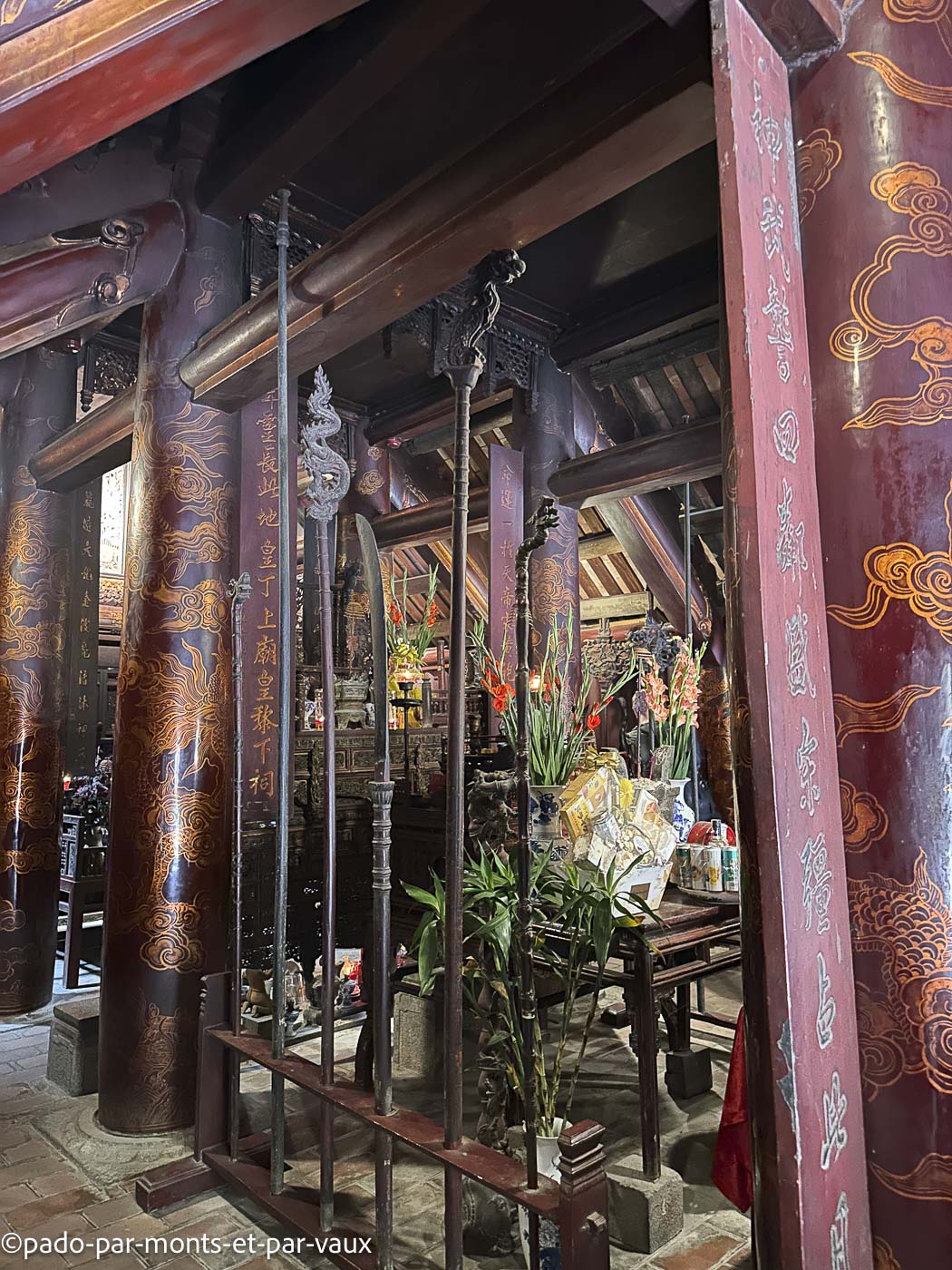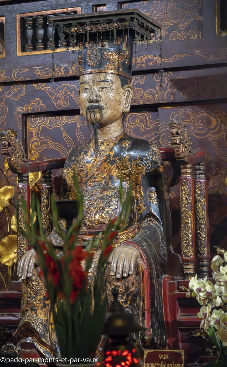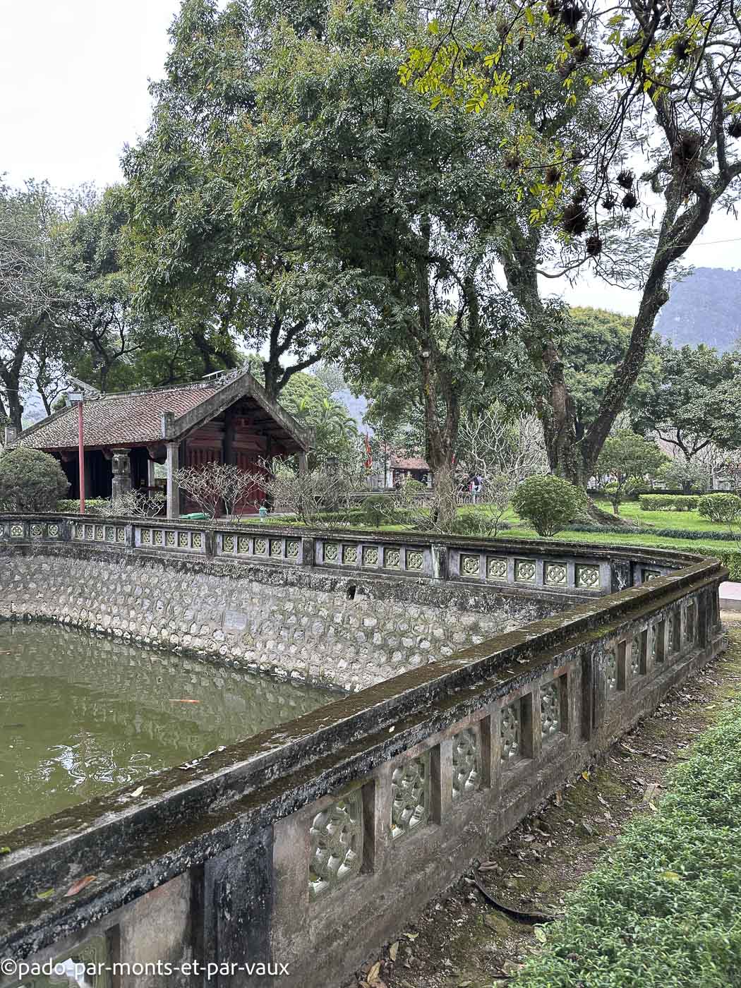 L’un est dédié à l’empereur Dinh Tien Hoang (den Dinh) et l’autre à l’empereur Le Dai Hanh (den Le). Belles colonnes de bois avec des décors laqués. Nous traversons également quelques fouilles avec des restes de murs de l’ancienne citadelle.