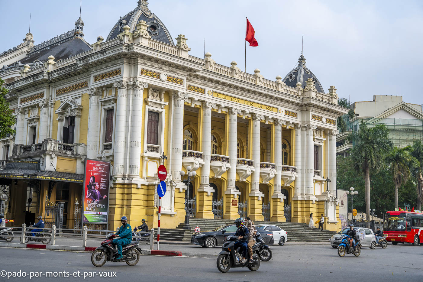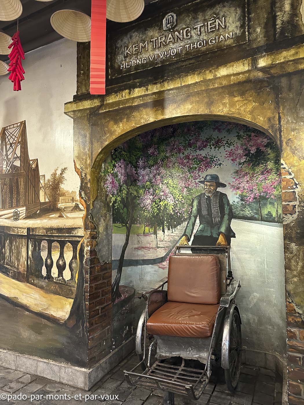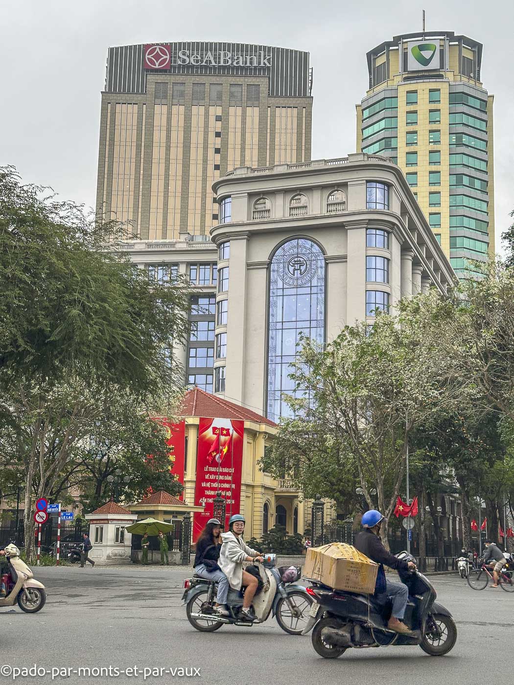 Nous rappelons ensuite un grab pour aller jusqu’au quartier de l’ancienne concession française. Nous nous faisons déposer devant l’opéra (construit entre 1901 et 1911). Promenade sympa dans ce quartier qui conserve des bâtiments de l’époque coloniale comme l’hôtel Métropole, le bureau des postes et télégraphes ou la banque d’Indochine. Nous empruntons l’ancienne rue Paul Bert et entrons dans une galerie où sont présentées un tas de vielles photos du quartier à diverses époques.