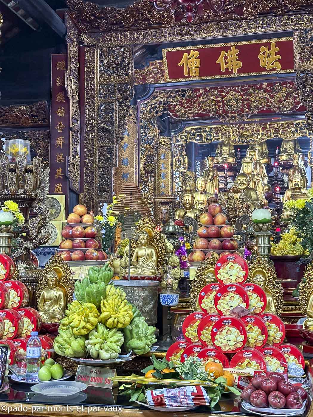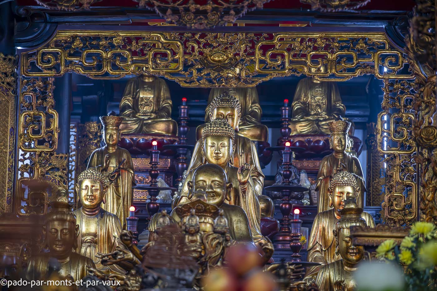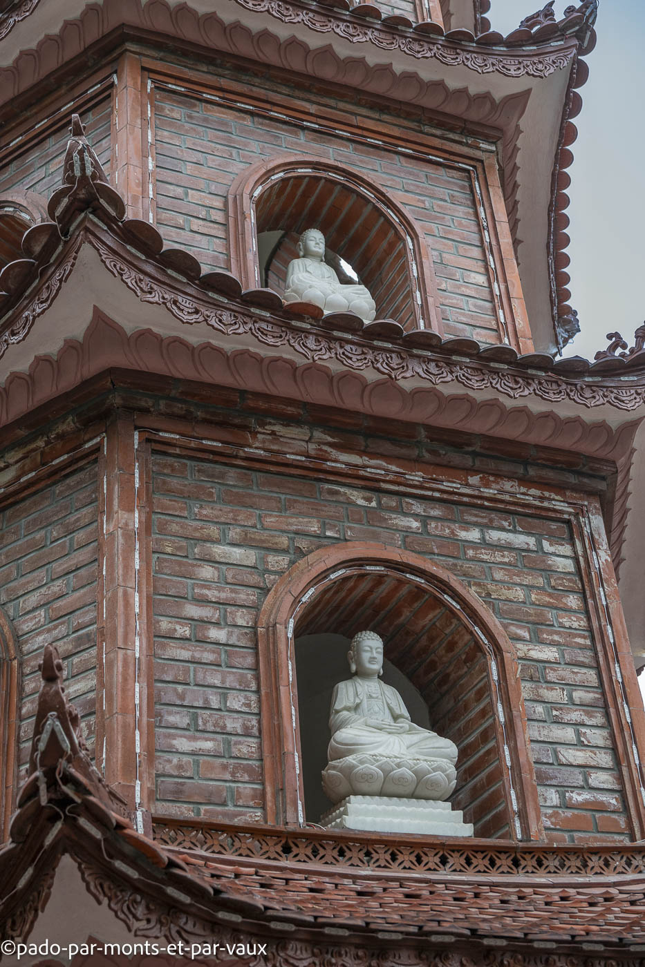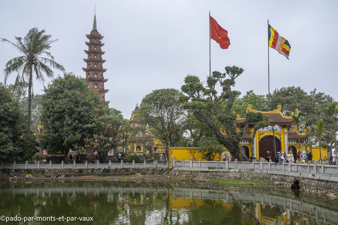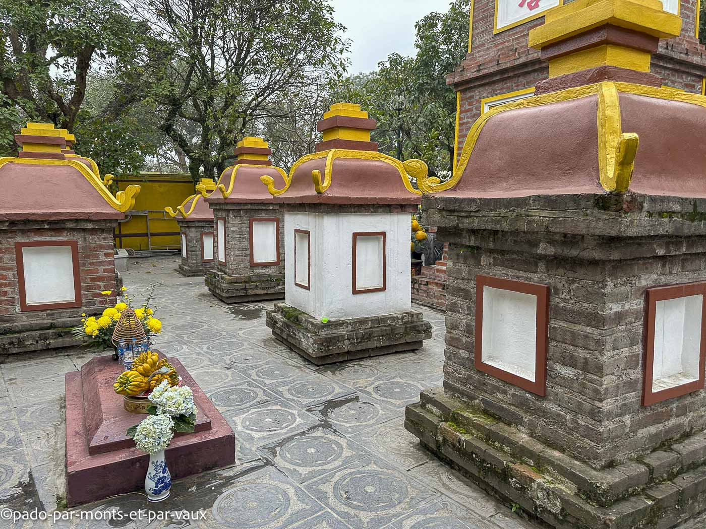 Nous descendons jusqu’à la Pagode de la Défense du pays où nous retrouvons la foule et des groupes qui saturent assez vite les lieux à visiter car il y a des goulots d’étranglement. C’est une jolie pagode entourée d’un ensemble de pagodons (cimetière monastique).