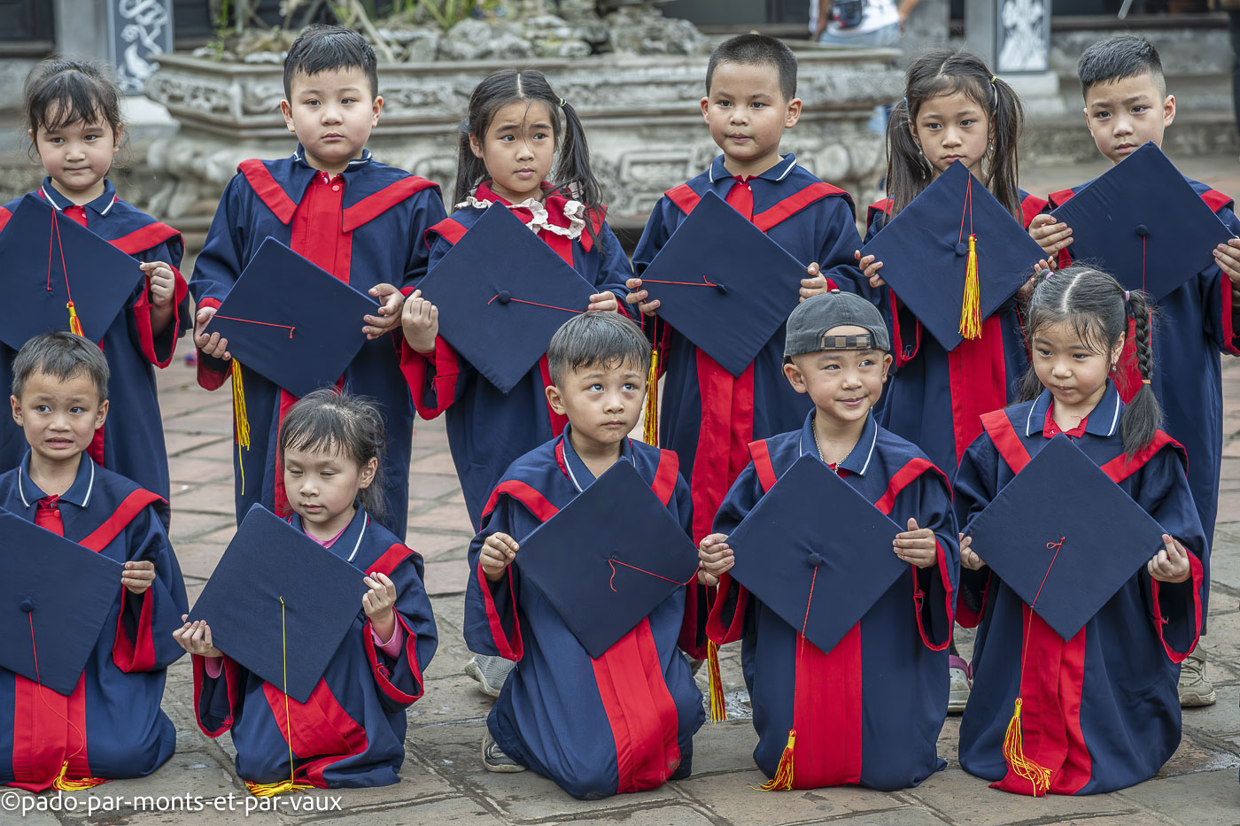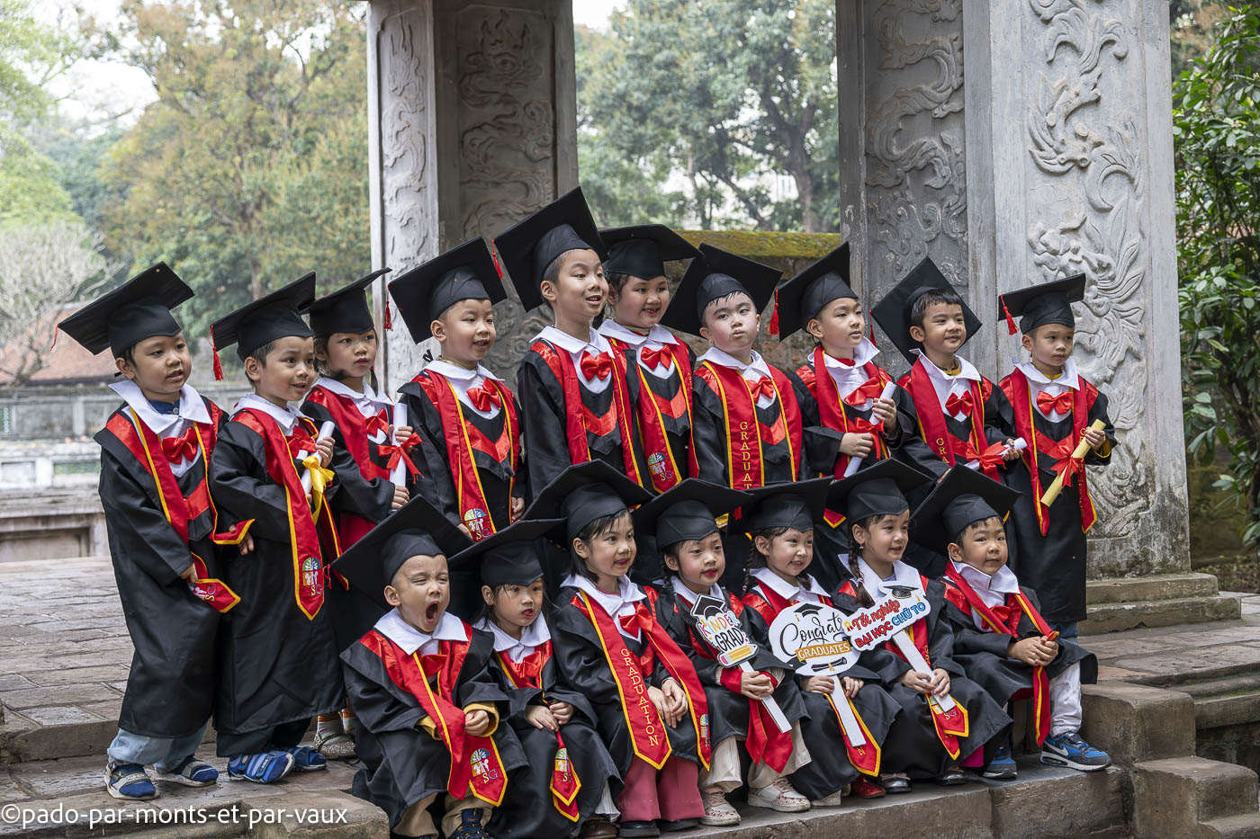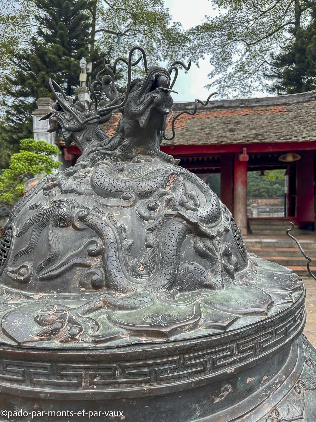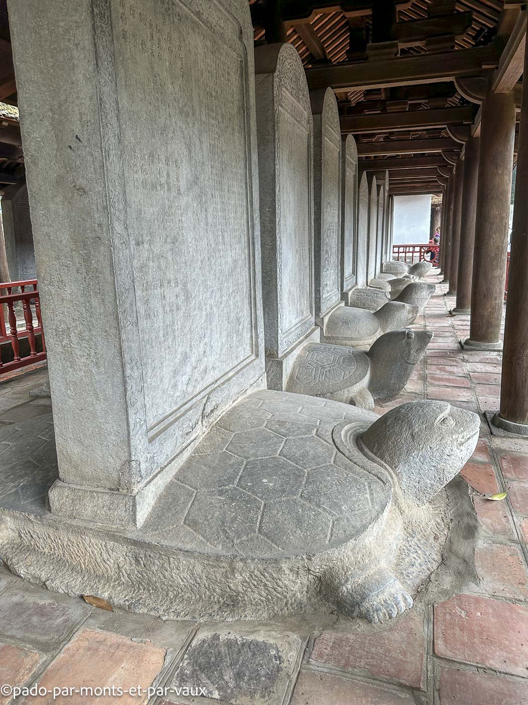 Arrêt suivant au Temple de la littérature. Construit en 1070, il était initialement réservé à l’enseignement des princes et des enfants des familles nobles. Au cours des siècles l’endroit est resté une école d’excellence. La partie centrale est divisée en cinq cours aux noms évocateurs : cour de l’initiation à l’étude, cour du succès, cour des stèles des docteurs (82 stèles sculptées), cour du grand succès et cour de la sagesse. C’est un très bel ensemble de bâtiments.