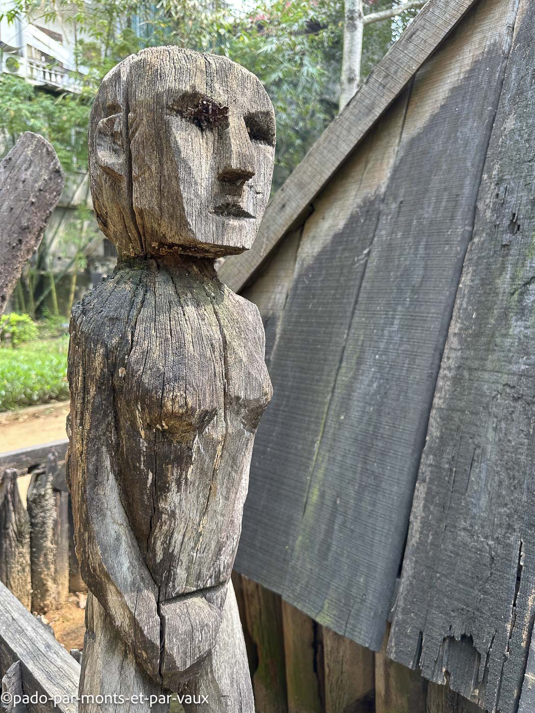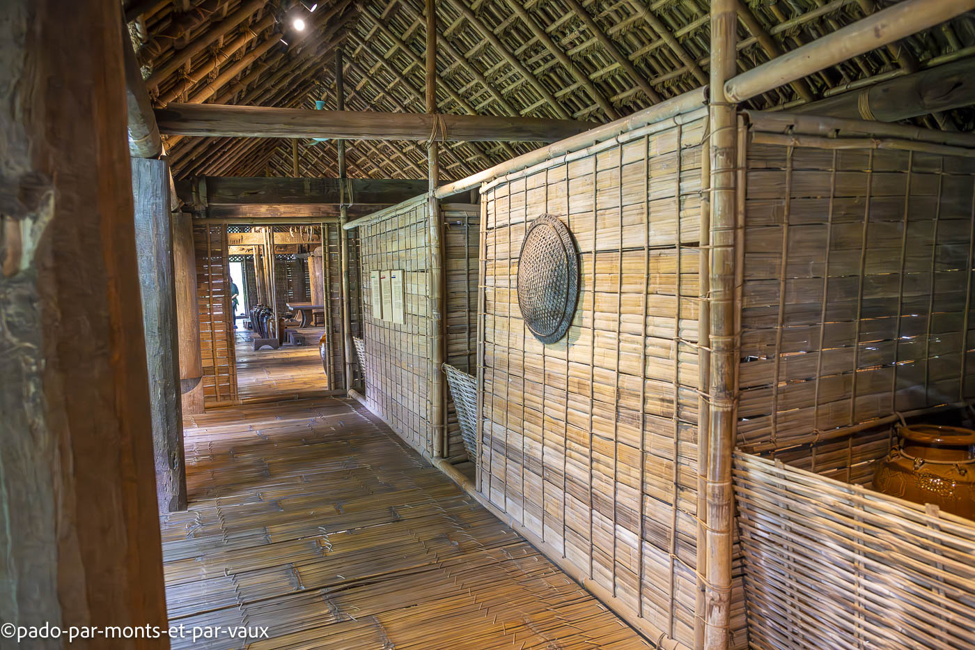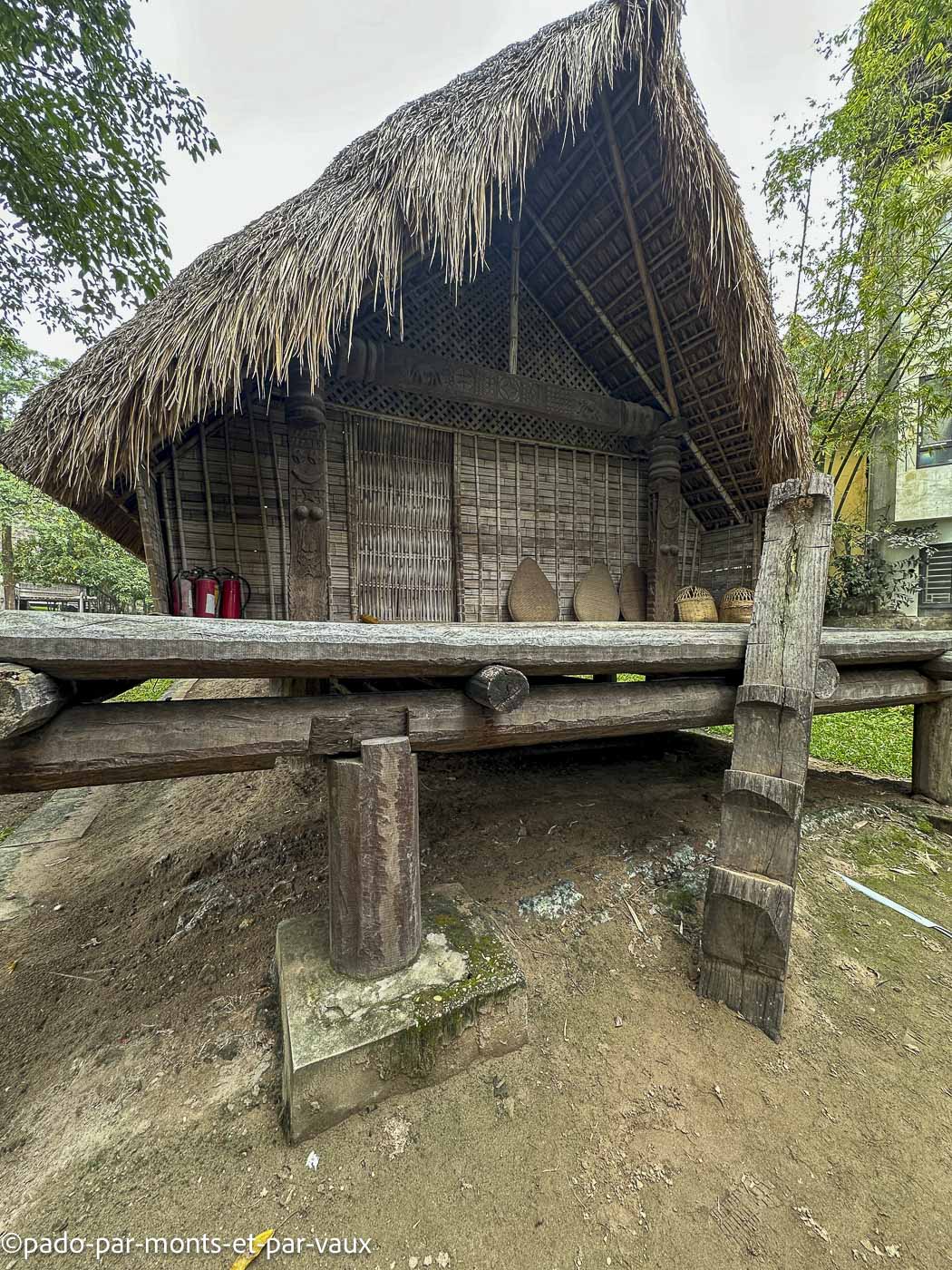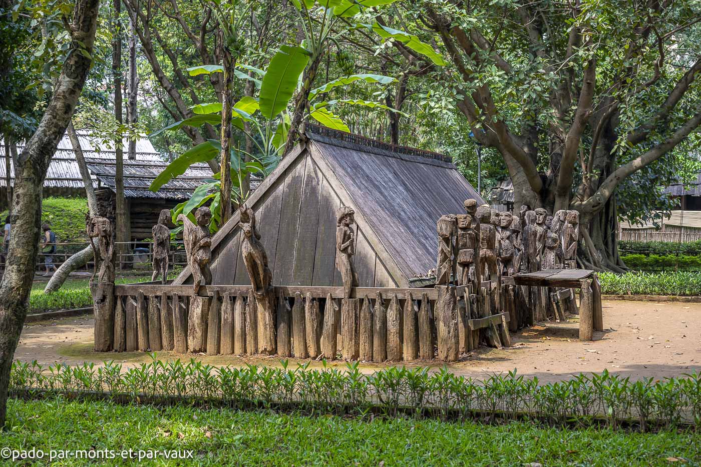 On commence par une maison Cham, puis une pirogue de course Khmère, un théâtre de marionnettes sur l’eau, une maison Viet, une « long house » de l’ethnie Ede, une maison commune des Bahnar juchée sur pilotis, un tombeau collectif Jörai, une tombe Cotu, une maison Tay, une maison Yao Ho, une maison Hmong et une maison Hani. La présentation est superbe et la visite est très intéressante.
