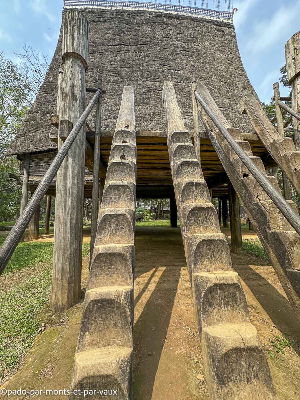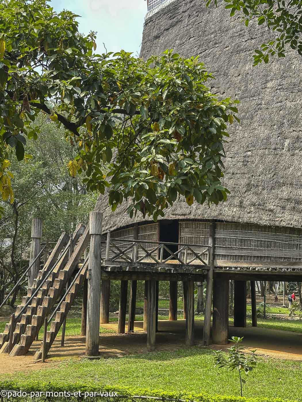 En sortant nous prenons un grab jusqu’au musée d’ethnographie qui est assez loin. 54 ethnies cohabitent au Vietnam, même si les Viet ou Kinh représentent plus de 85% de la population. Nous commençons par visiter l’extérieur, le jardin d’architectures, où sont installées des constructions villageoises. Les maisons proviennent de tout le pays. Elles ont été démontées puis soigneusement remontées par des villageois.