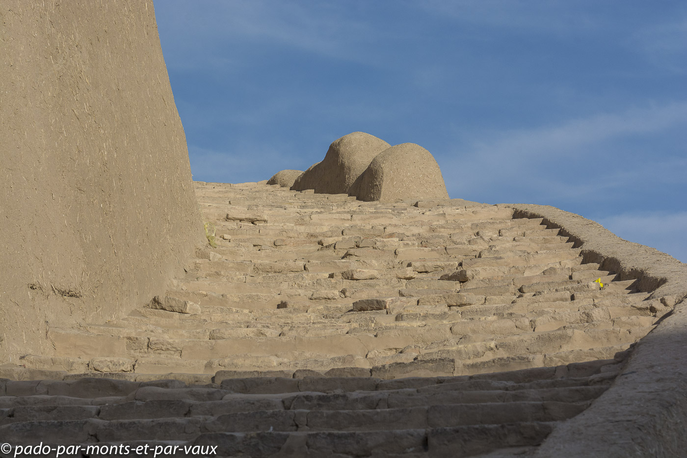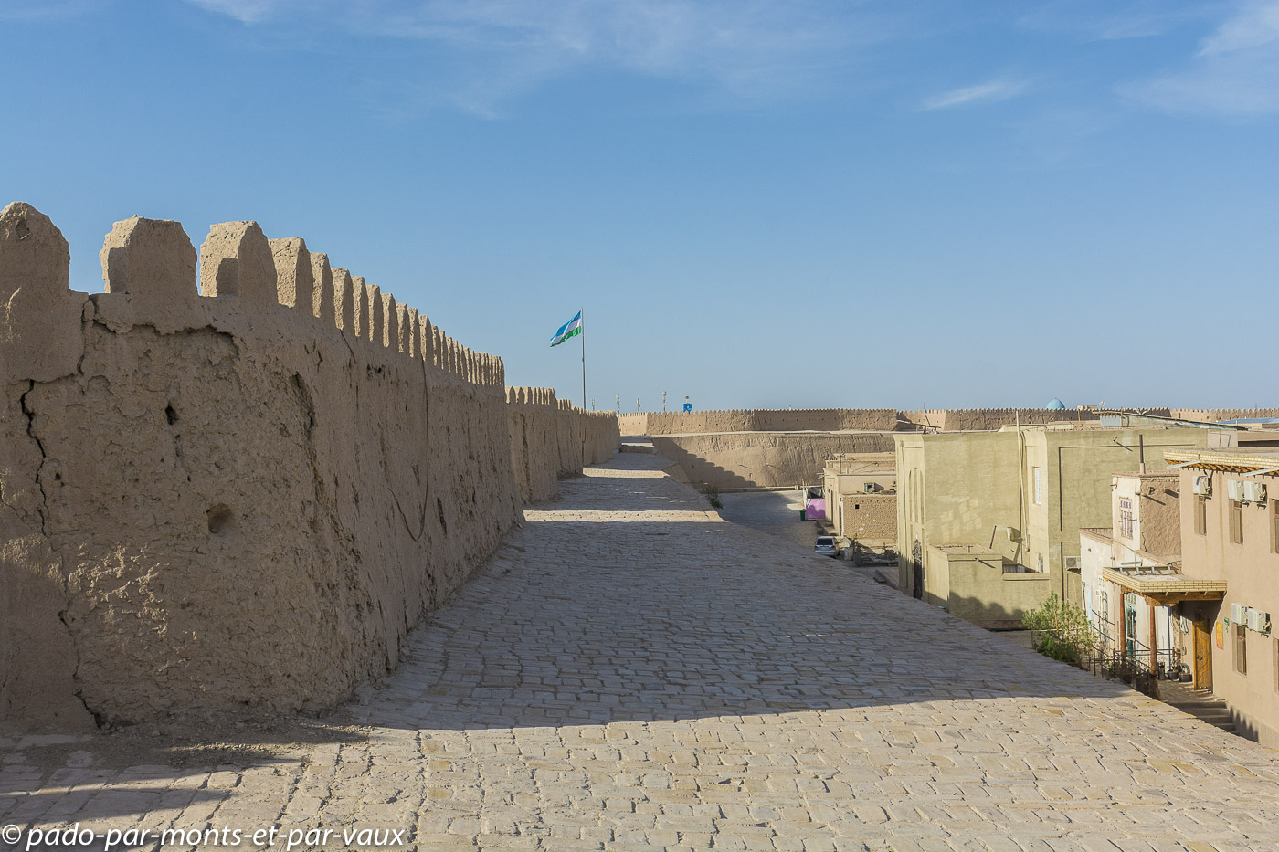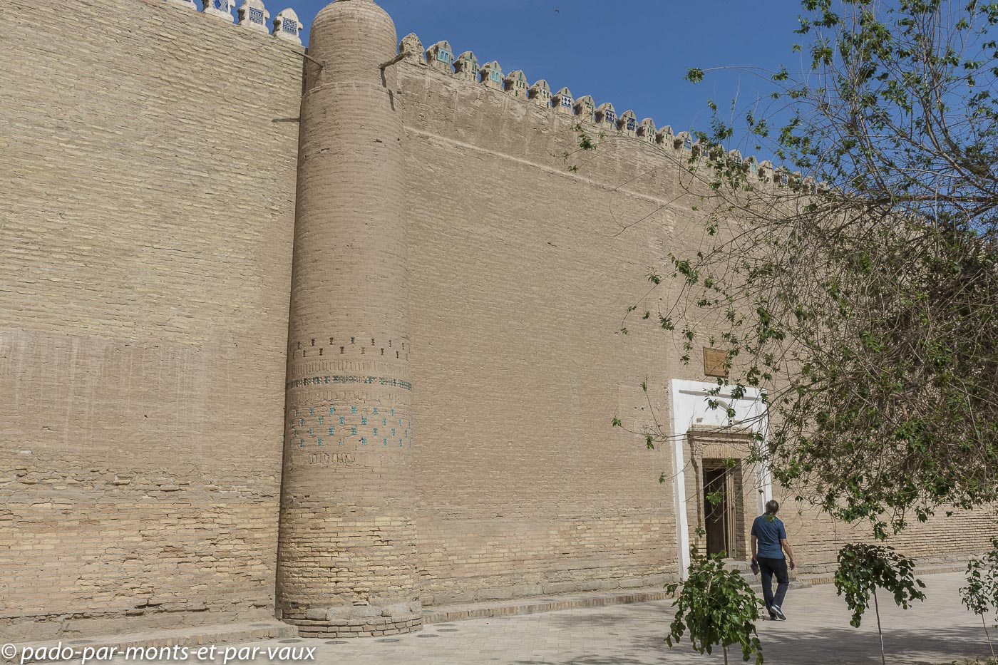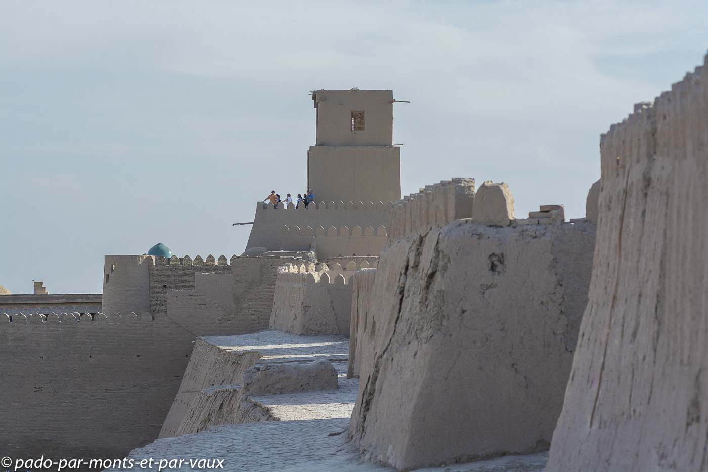 Suite des visites de la vieille ville. Patrice grimpe jusqu’au sommet du minaret de la madrasa Islam Khodja qui ressemble un peu à un phare avec ses bandes de céramiques bleues et blanches. Ce minaret qui culmine à 45 mètres est le plus haut de la ville. Il a été construit en 1910. Je renonce à monter car les 120 marches sont très hautes et il n’y a pas de main courante pour se tenir (mais impossible de me faire rembourser le prix du ticket). Dans la madrasa attenante, il y a un petit musée présentant l’artisanat ouzbek (pierres gravées, faïences, sculptures sur bois, orfèvrerie…). L’ensemble est bien présenté mais il n’y a aucune explication en anglais.