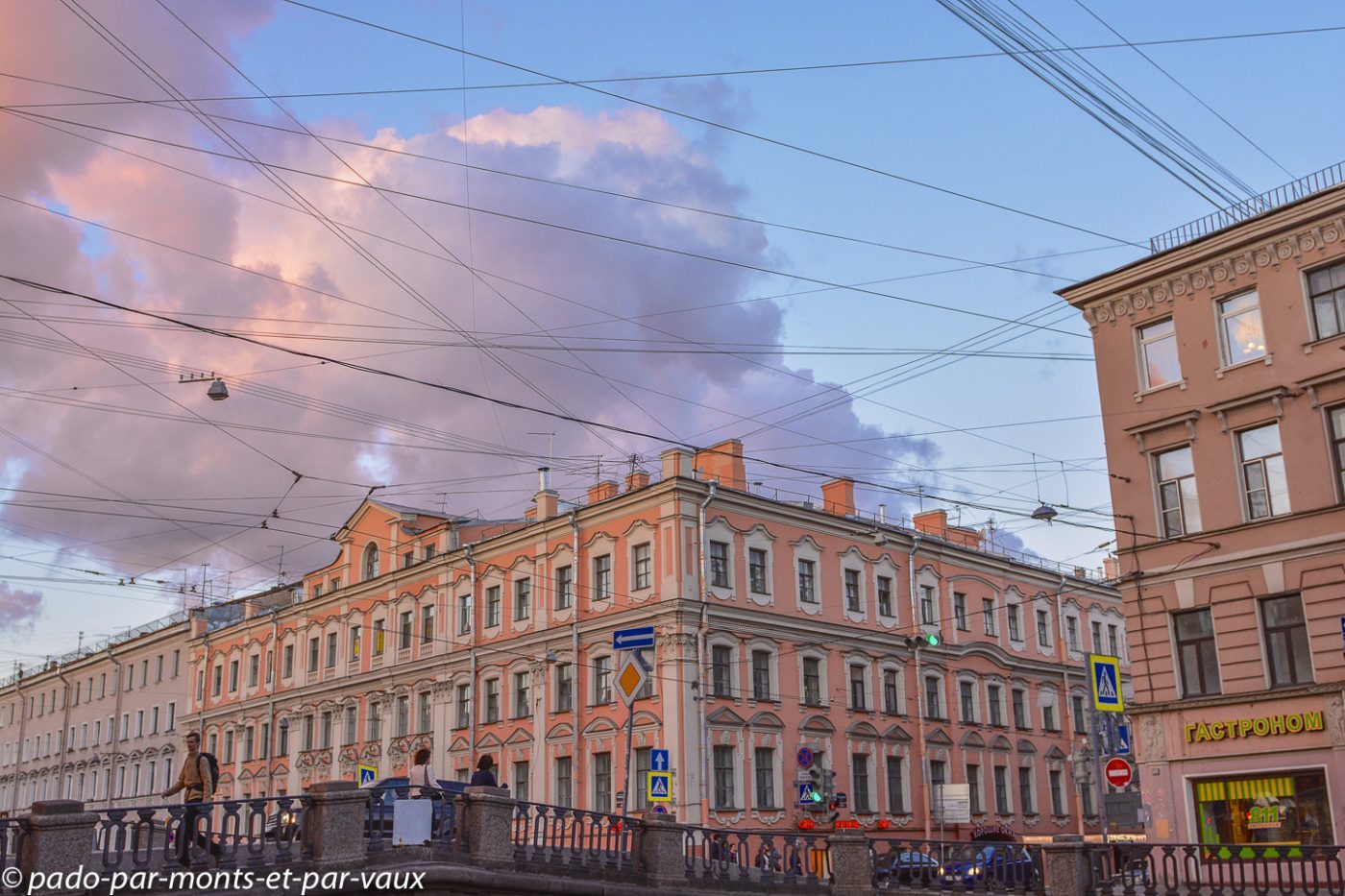 Ce soir le ciel s’embrase et Saint Pétersbourg se colore de rose : superbe !