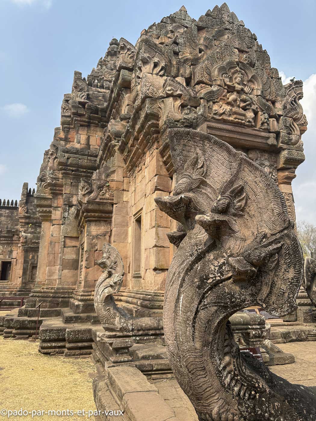 Le Prasat Muang Tham date du 11ème siècle et est dédié à Shiva. Très beau temple avec quatre bassins en L dont les balustres représentent des serpents.