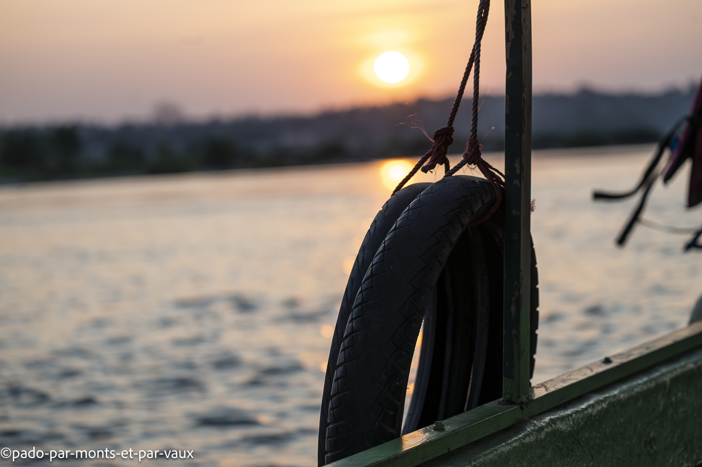 Retour à l’hôtel où nous faisons une pause jusqu’à 16h, en attendant la sortie en bateau sur le Mékong que nous avons réservée. Une heure et demie de promenade jusqu’au coucher du soleil.